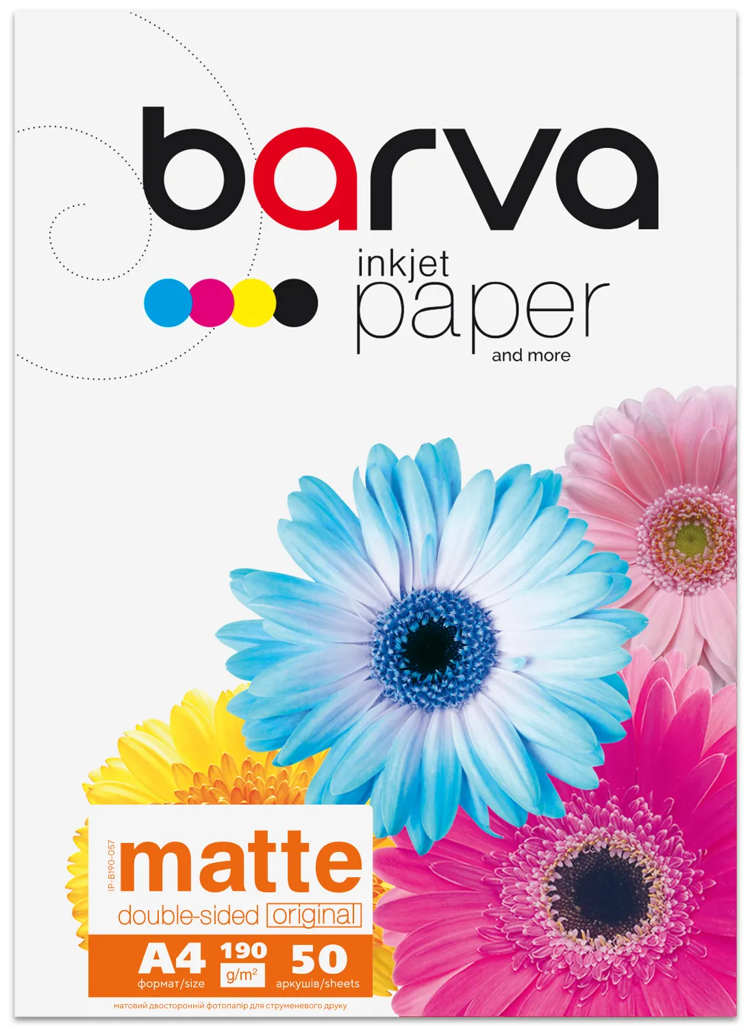Фотобумага матовая двусторонняя 190 г/м2, А4, 50 л Original Barva (IP-B190-057) - гарантия качества
