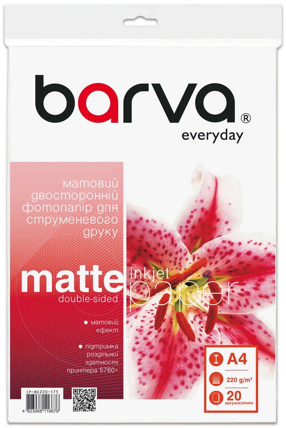 Фотобумага матовая двусторонняя 220 г/м2, A4, 20 л Everyday Barva (IP-BE220-175) - лучшие товары для вашей печатающей техники