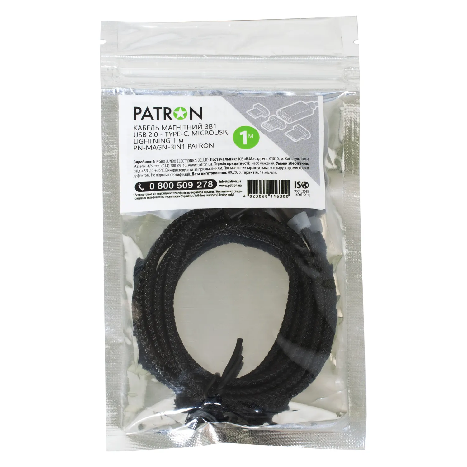 - Кабель магнитный 3 в 1 USB 2.0 - Type-C, Micro USB, Lightning 1 м Patron (PN-MAGN-3IN1)