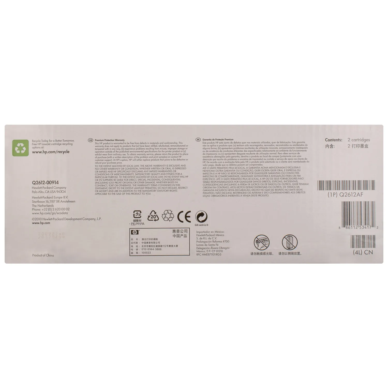 Оригинальный картридж Q2612D, произведен компанией HP, которая гарантирует качественную печать на протяжении всего ресурса - 2х2000 страниц. Картридж 12A черный HP (Q2612AD/Q2612AF) относится к группе оригинальных расходных материалов, единственным минусом которых является высокая стоимость.