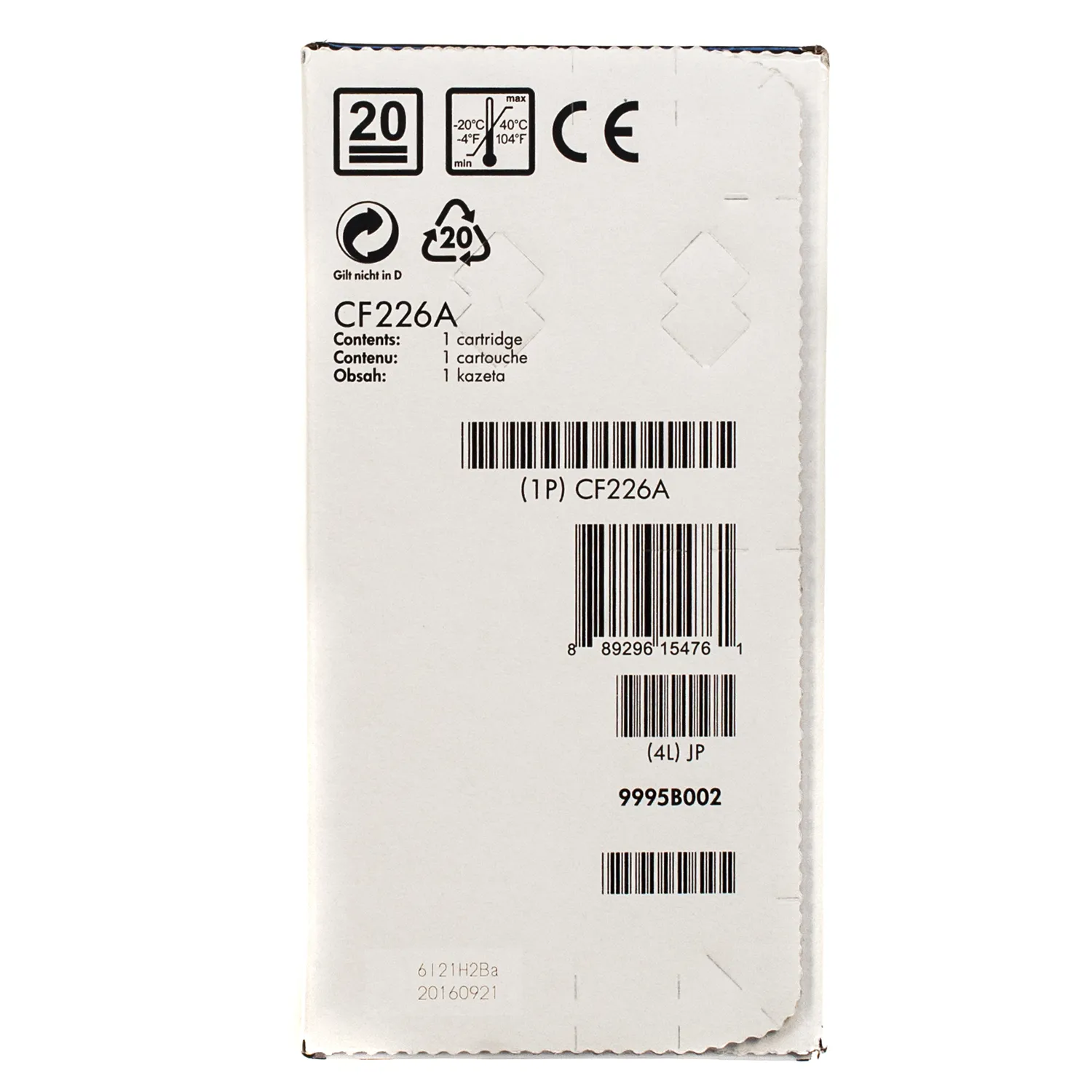 Оригинальный картридж CF226A, произведен компанией HP, которая гарантирует качественную печать на протяжении всего ресурса - 3100 страниц. Картридж 26A черный HP (CF226A) относится к группе оригинальных расходных материалов, единственным минусом которых является высокая стоимость.