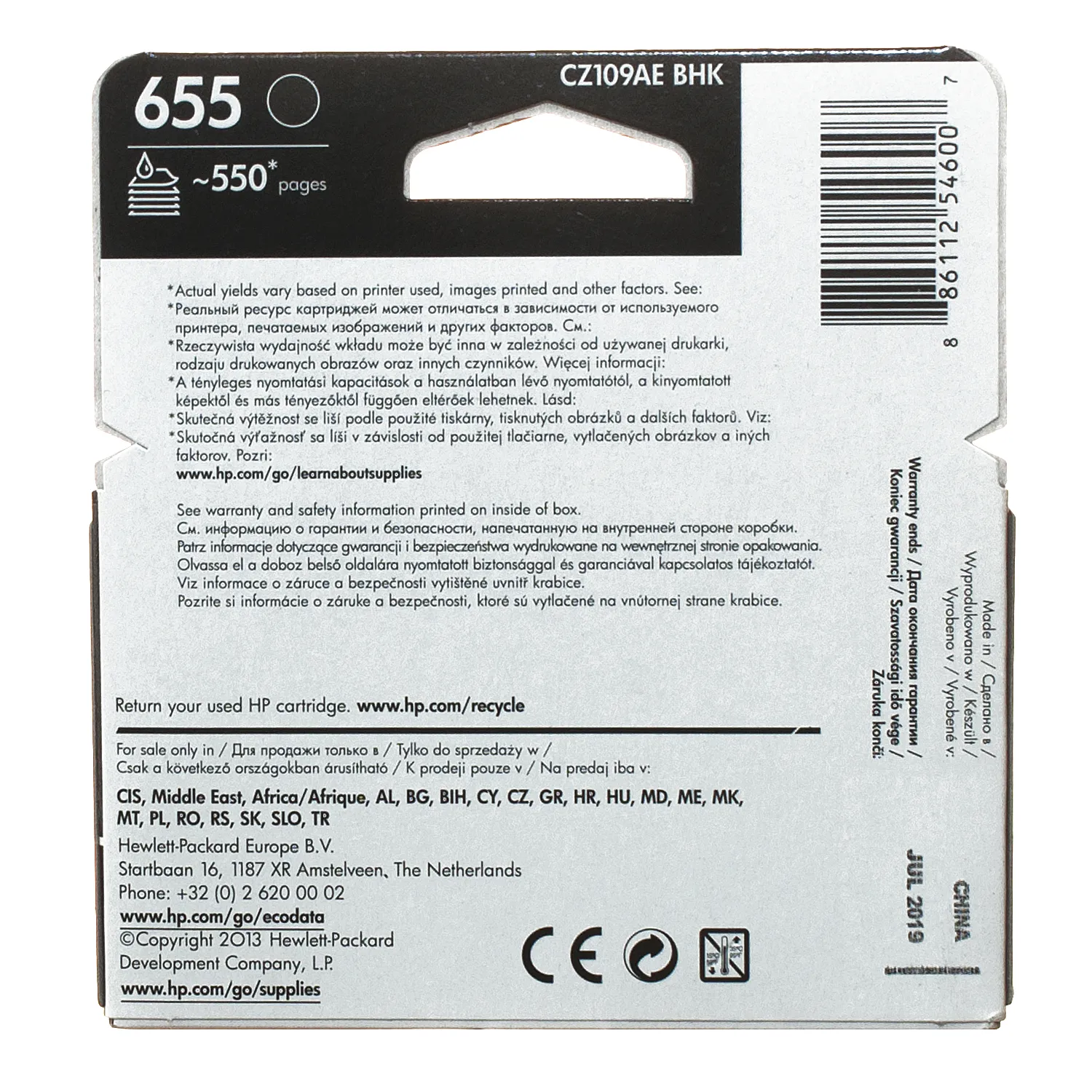 Картридж №655 550 стр, черный HP (CZ109AE) описание: