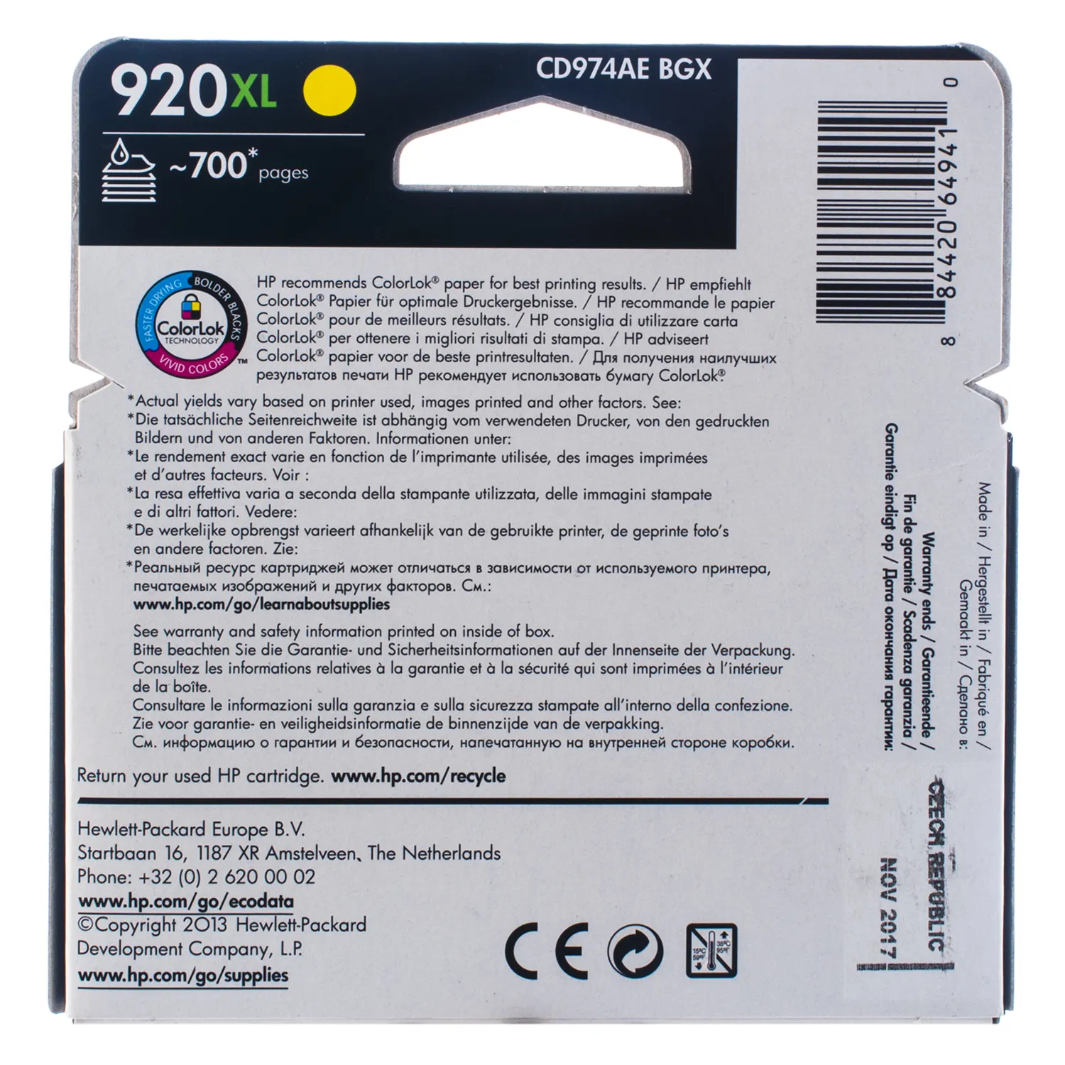 Картридж №920XL 700 стр, желтый HP (CD974AE) описание: