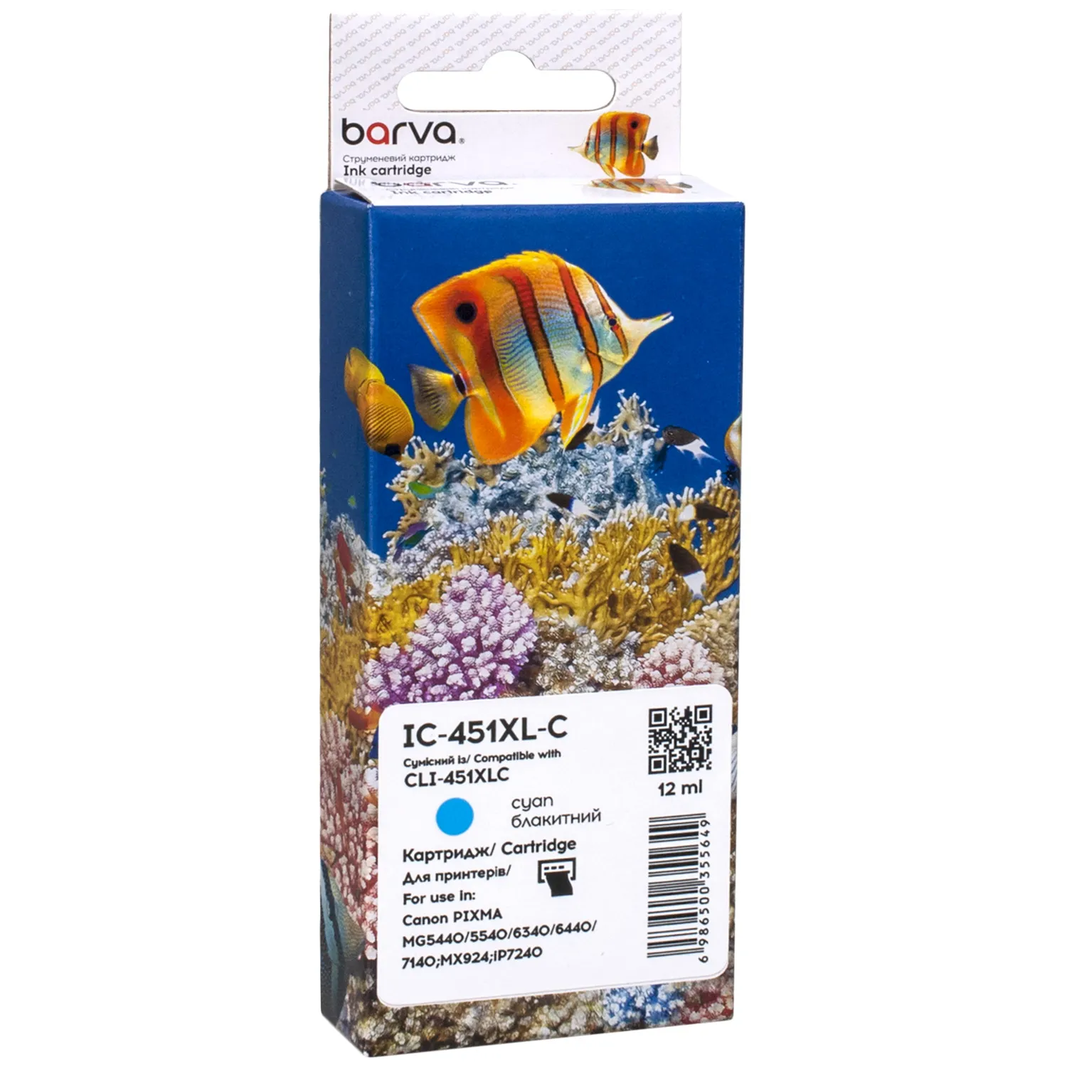 - Картридж совместимый Canon CLI-451C XL (6473B001) 665 стр, голубой Barva (IC-451XL-C)
