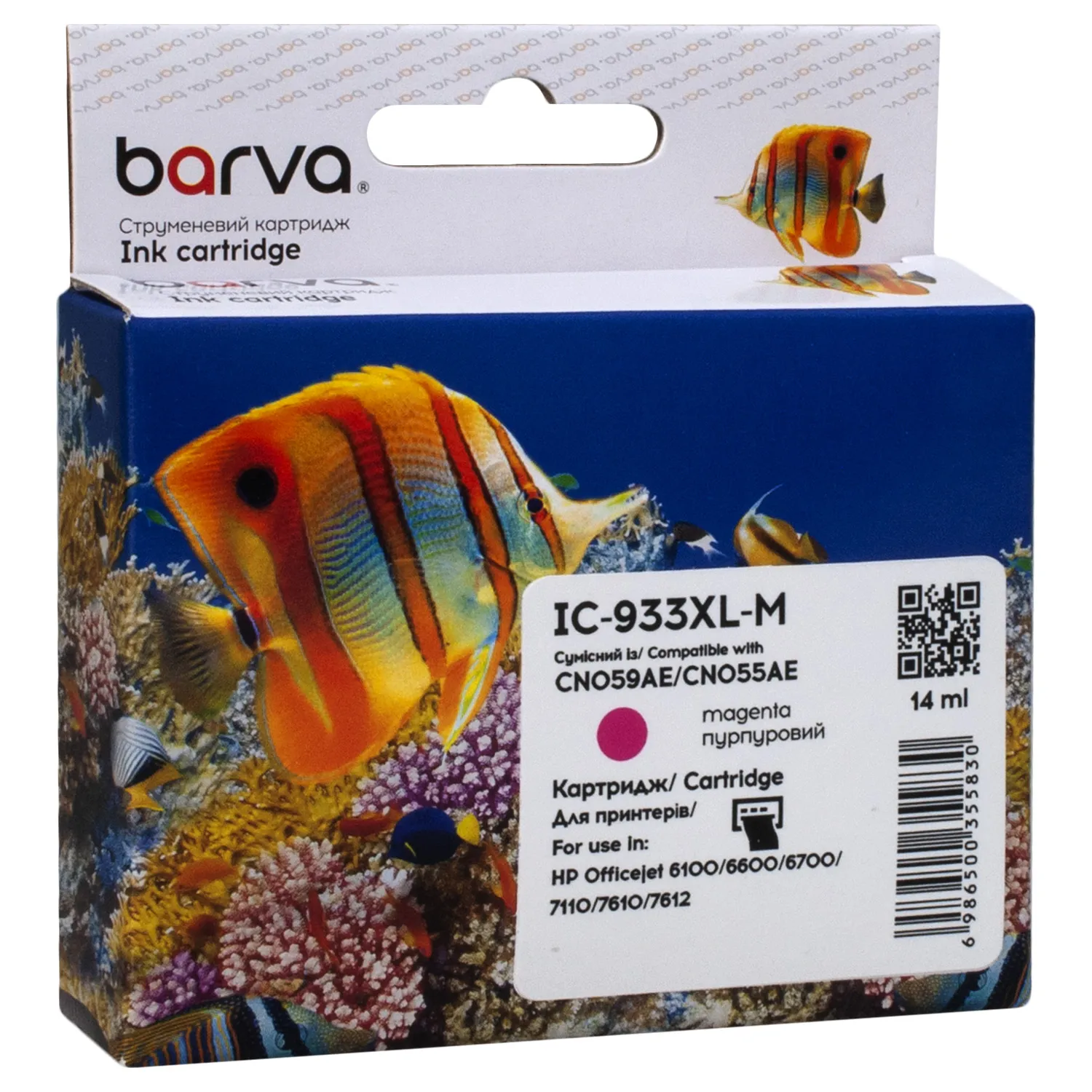 Картридж совместимый HP 933XL (CN055AE/CN059AE) 920 стр, пурпурный Barva (IC-933XL-M), описание: