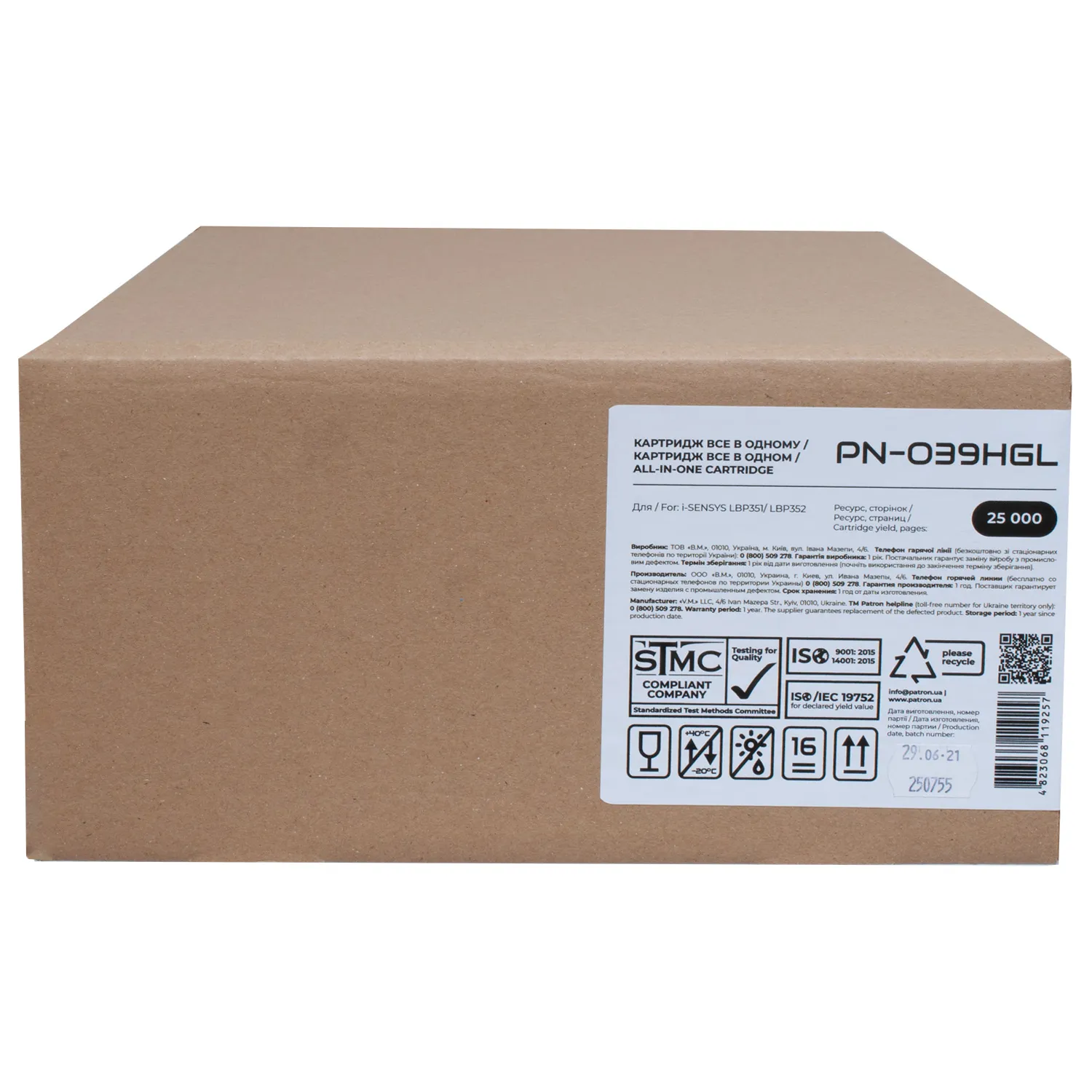 Мы позаботились о том, чтобы упаковка картриджа была не только экологичной, функциональной, имела минимально возможные физические размеры, но и содержала всю необходимую информацию. На зеленой этикетке находится информация о продукте, его совместимости с печатающими устройствами, номер партии, дата изготовления, контакты производителя, а также номер телефона бесплатной горячей линии для украинских потребителей.