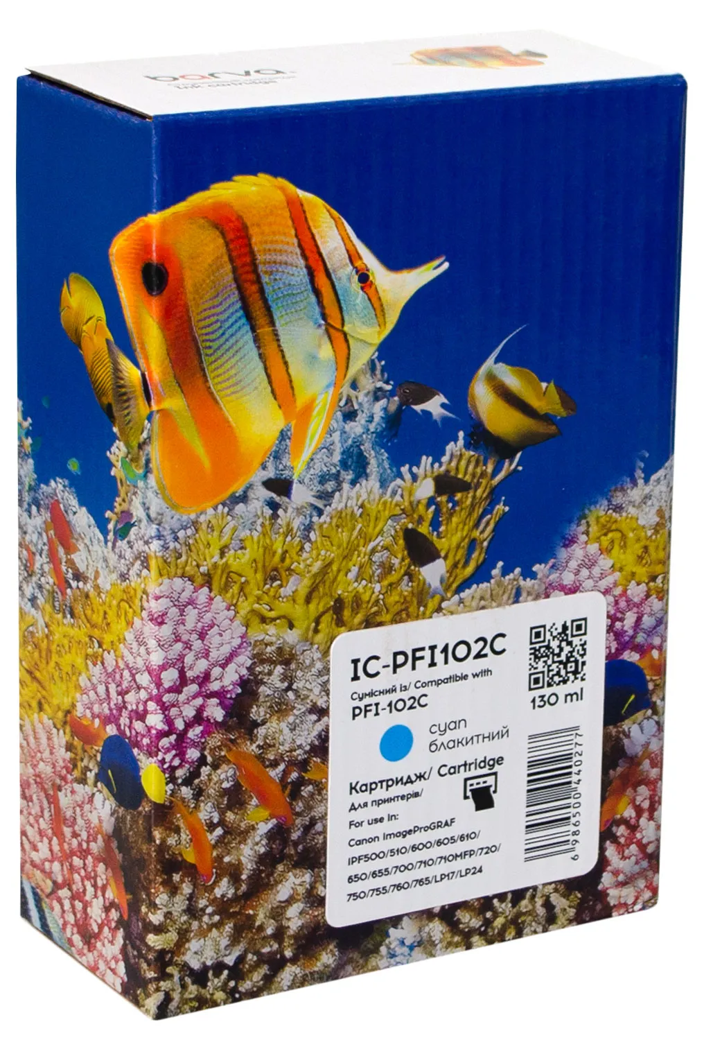- Картридж совместимый Canon PFI-102C (0896B001) 130 мл, голубой Barva (IC-PFI102C)