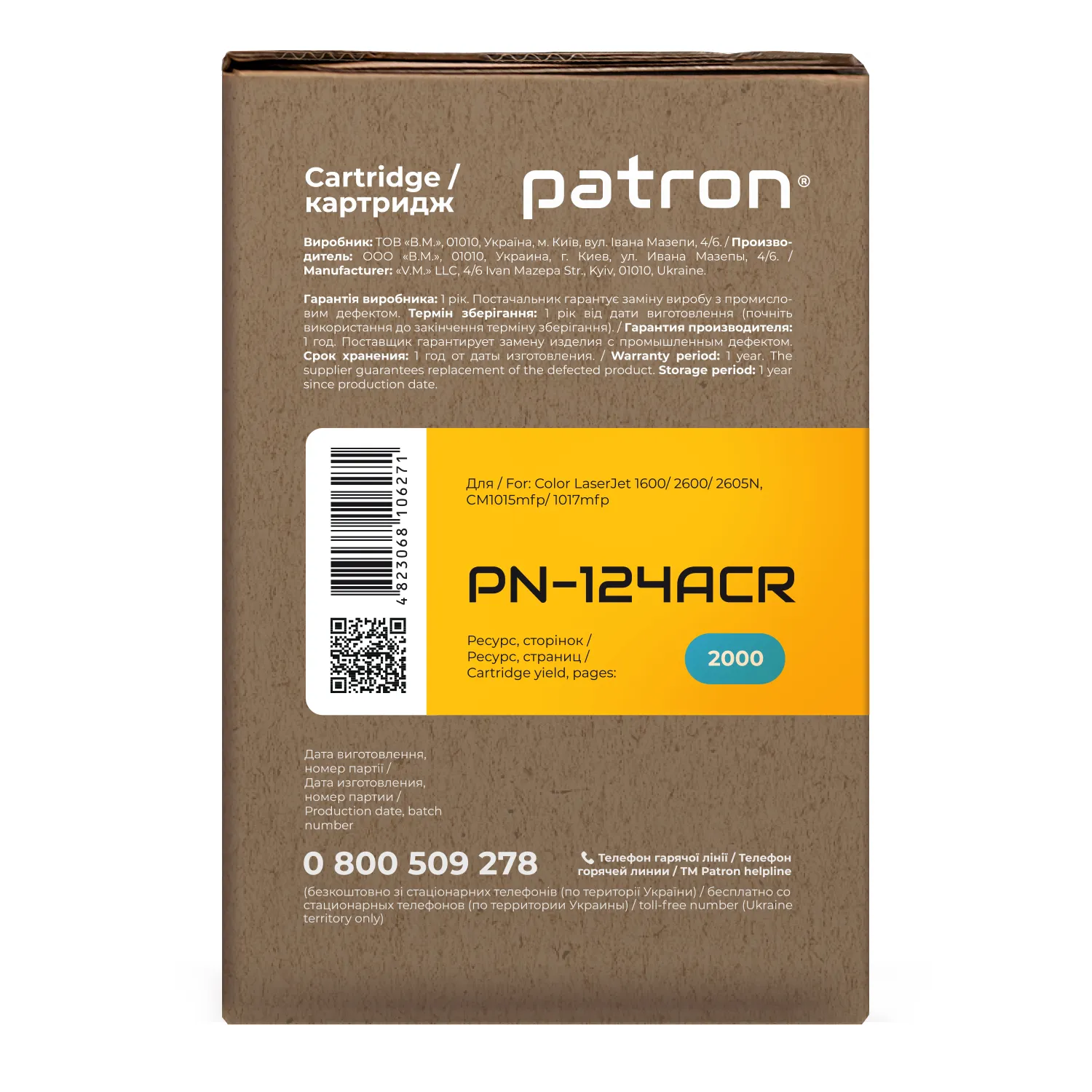 Украинская компания ТОВ «В. М.» производит картриджи Patron Extra с 2004 года. Это реальный продукт, произведенный в нашей стране.