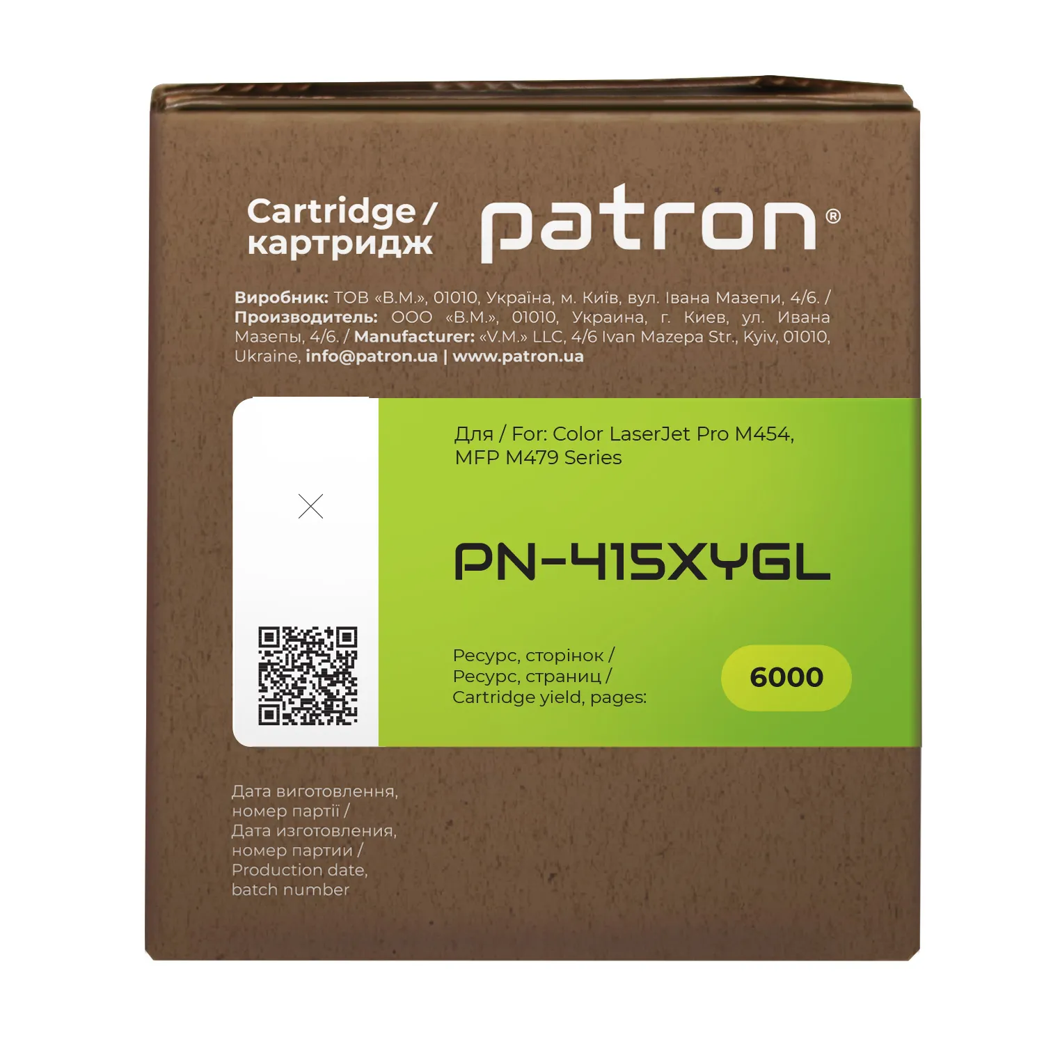 Мы позаботились о том, чтобы упаковка картриджа была не только экологичной, функциональной, имела минимально возможные физические размеры, но и содержала всю необходимую информацию. На зеленой этикетке находится информация о продукте, его совместимости с печатающими устройствами, номер партии, дата изготовления, контакты производителя, а также номер телефона бесплатной горячей линии для украинских потребителей.