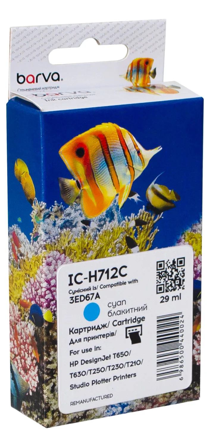 Картридж совместимый HP 712 (3ED67A/3ED77A) 29 мл, голубой Barva (IC-H712C), описание: