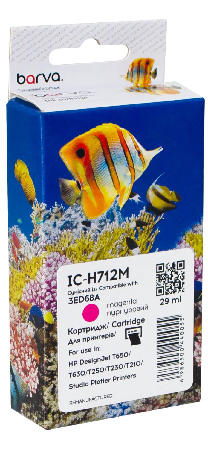В общем, струйный картридж BARVA – это выгодная альтернатива оригинальным расходным материалам, сочетающая в себе удобство использования, высокое качество печати и надежность. Важно! Перед тем, как заказать Картридж совместимый HP 712 (3ED68A/3ED78A) 29 мл, пурпурный Barva (IC-H712M), внимательно проверьте его совместимость с устройством печати.