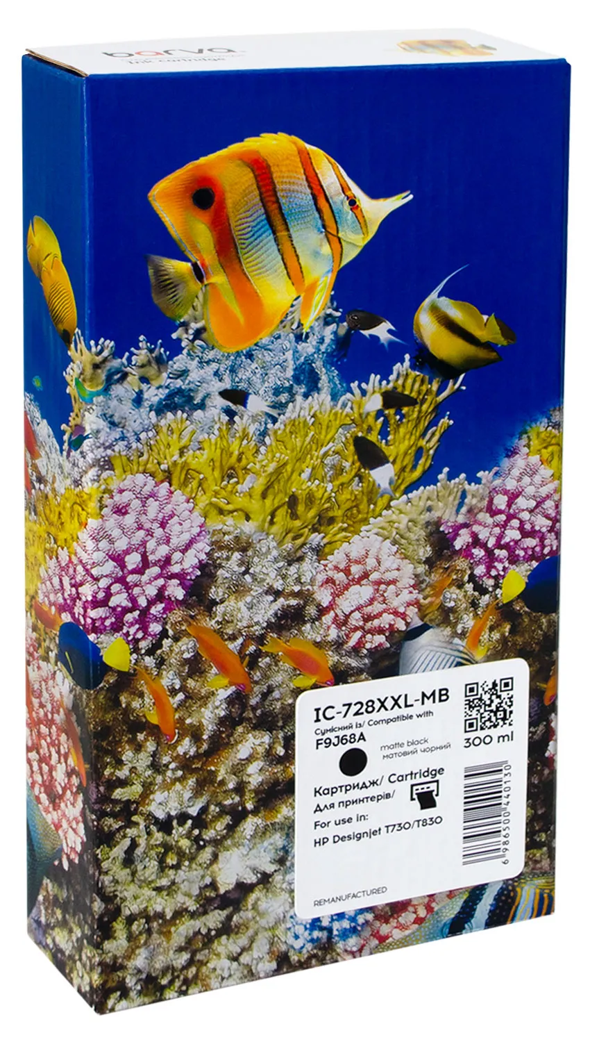 - Картридж совместимый HP 728XXL (F9J68A) версия U1-U30, 300 мл, матовый черный Barva (IC-728XXL-MB)