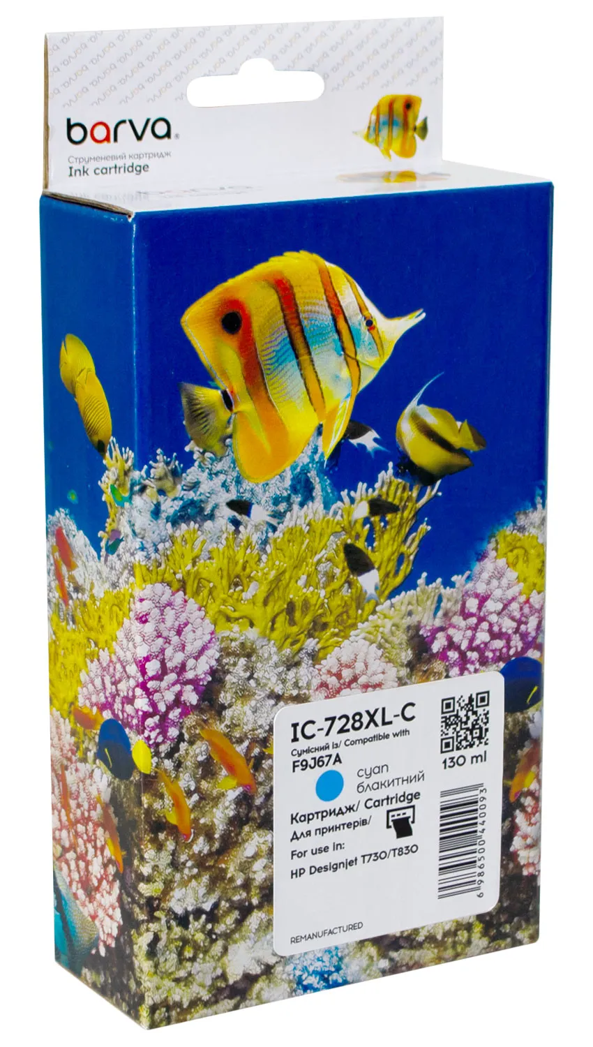 - Картридж совместимый HP 728XL (F9J67A) версия U1-U30, 130 мл, голубой Barva (IC-728XL-C)