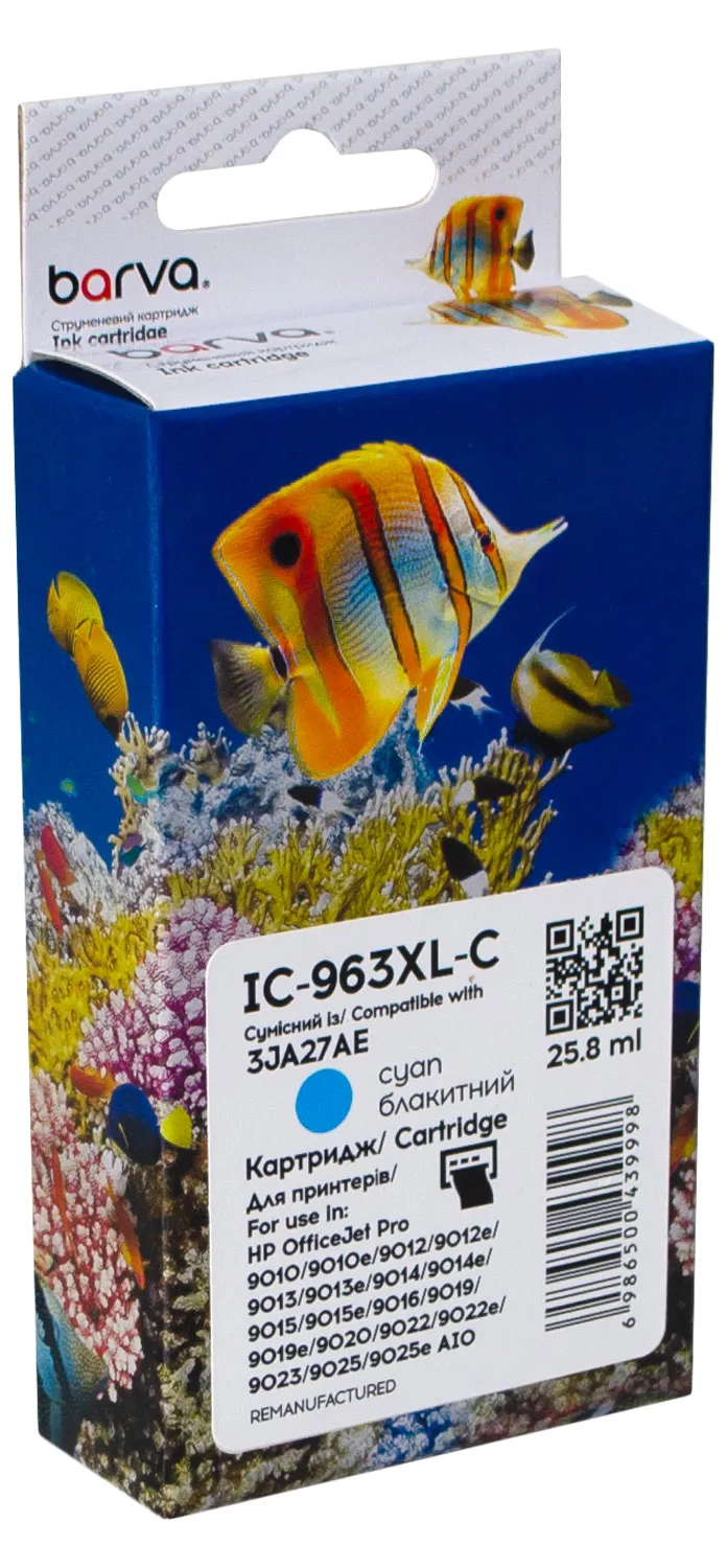 Картридж совместимый HP 963XL (3JA23AE/3JA27AE) 1600 стр, голубой Barva (IC-963XL-C), описание: