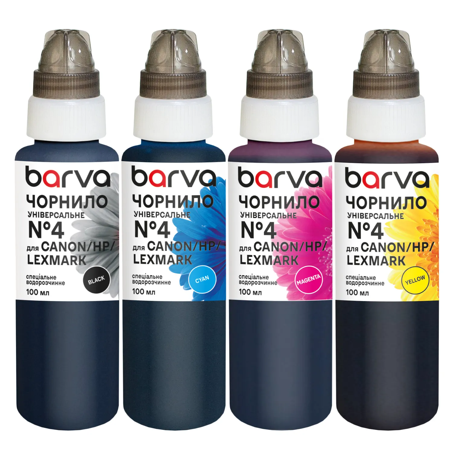Комплект чернил для Canon/HP/Lexmark универсальные №4 4x100 мл, водорастворимые, BK/C/M/Y Barva (CU4-100-MP)