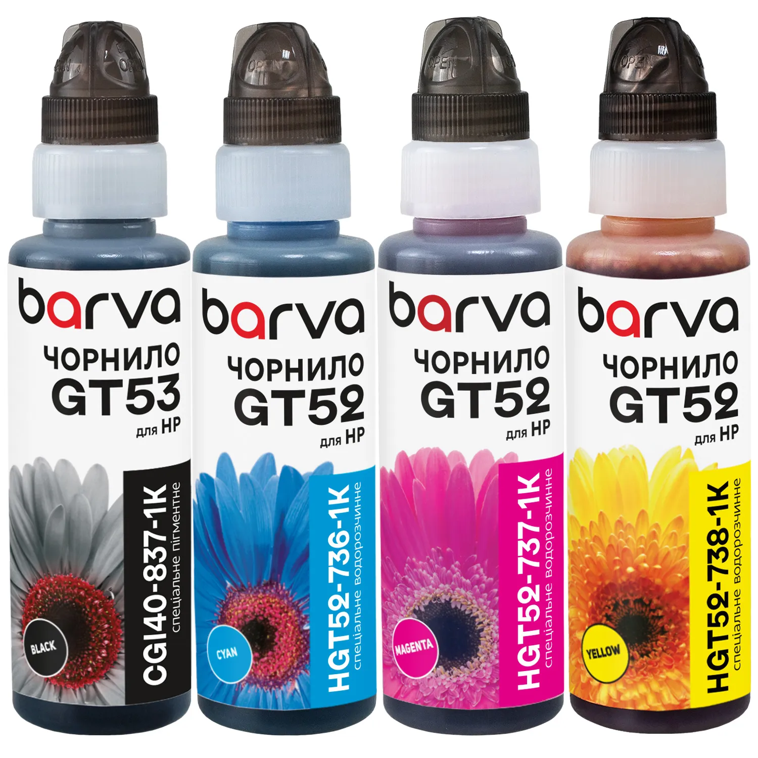 Комплект чернил для HP GT53/GT52 специальные 4x100 мл, флакон OneKey (1K), пигментные/водорастворимые, BK/C/M/Y Barva (HGT53-1K-MP) - заказывайте на сайте patronservice.ua