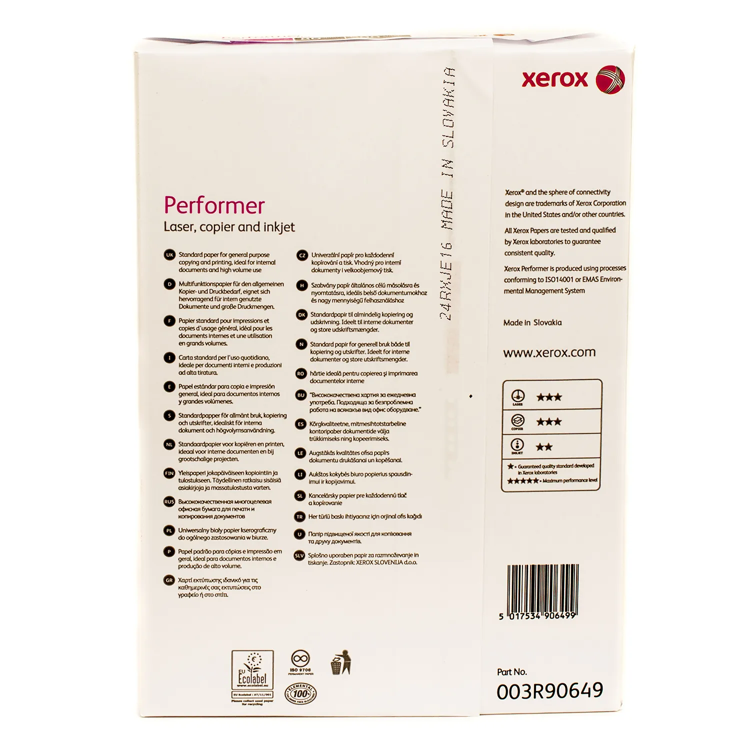 Вы можете купить Бумага офисная А4, 80 г/м2, 500 л, Класс С, Performer Xerox (003R90649) в нашем интернет-магазине с доставкой по Киеву и всей Украине.