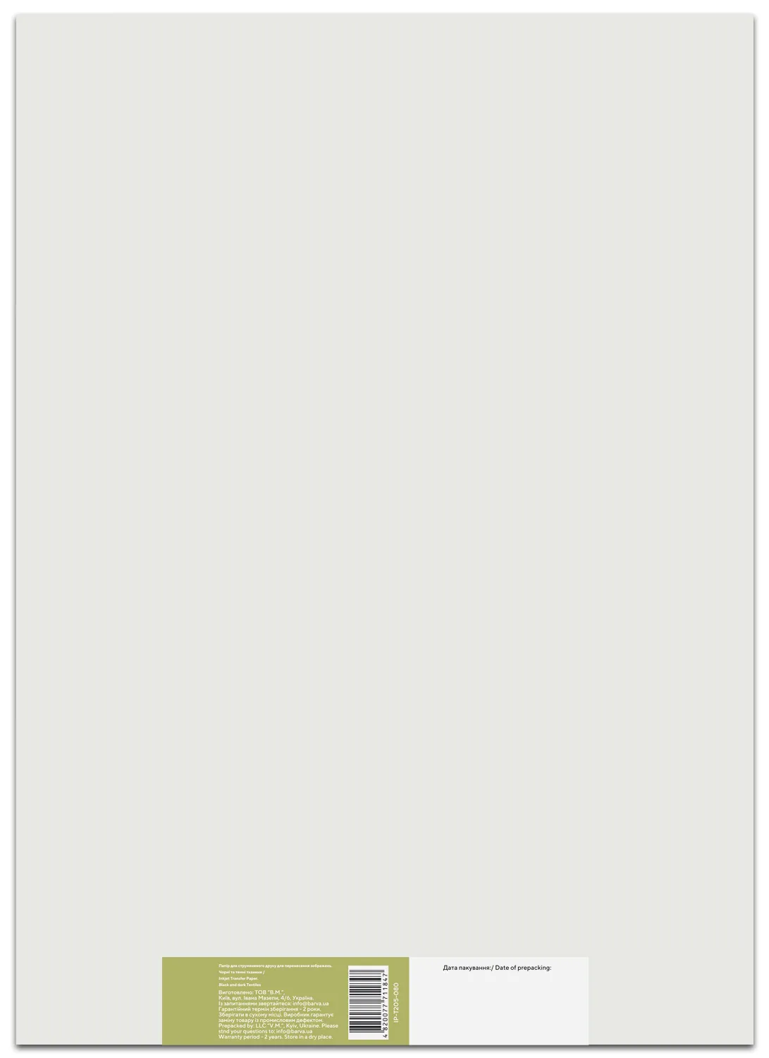 Специальная термотрансферная бумага для струйной печати, предназначена для переноса черно-белых или цветных изображений на хлопчатобумажные ткани с помощью утюга или термопреса.