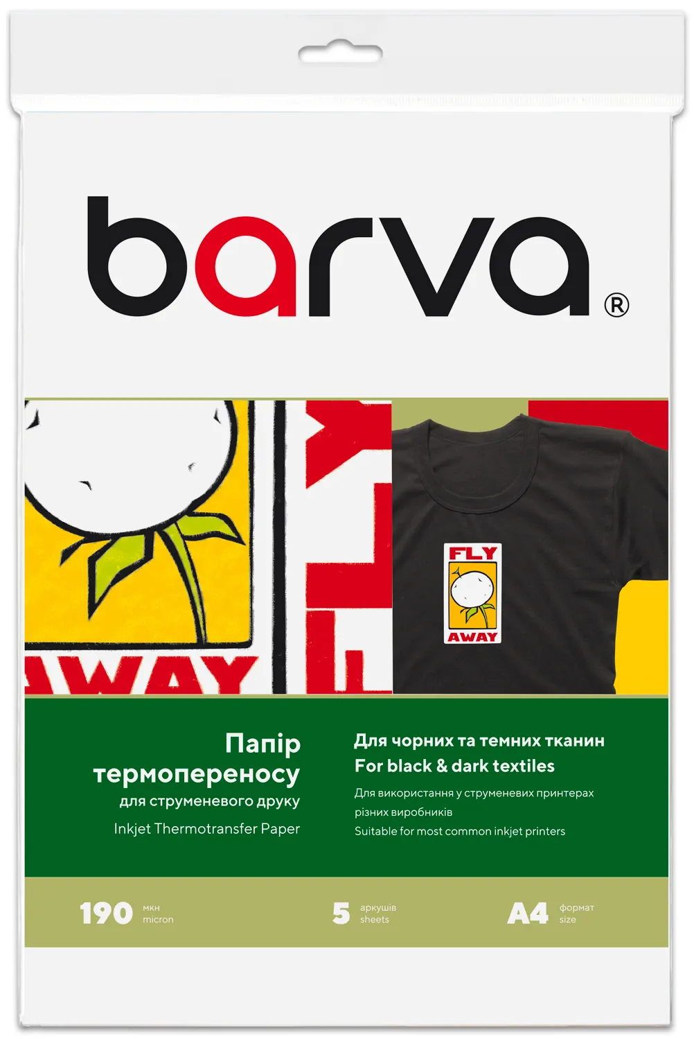 Бумага термотрансферная для струйной печати 190 г/м2, А4, 5 л, для темных тканей Barva (IP-T205-T01) - лучший выбор на сайте patronservice.ua