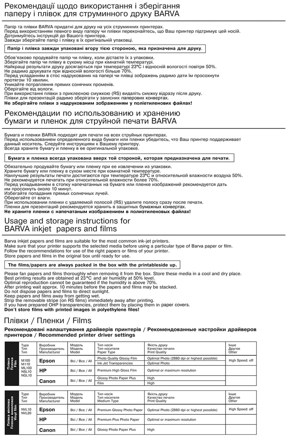 Пленка самоклеящаяся для струйной печати 270 мкм, A4, 20 л, виниловая, глянцевая, белая Barva (IF-NVL20-073) с какими принтерами или МФУ можно использовать?