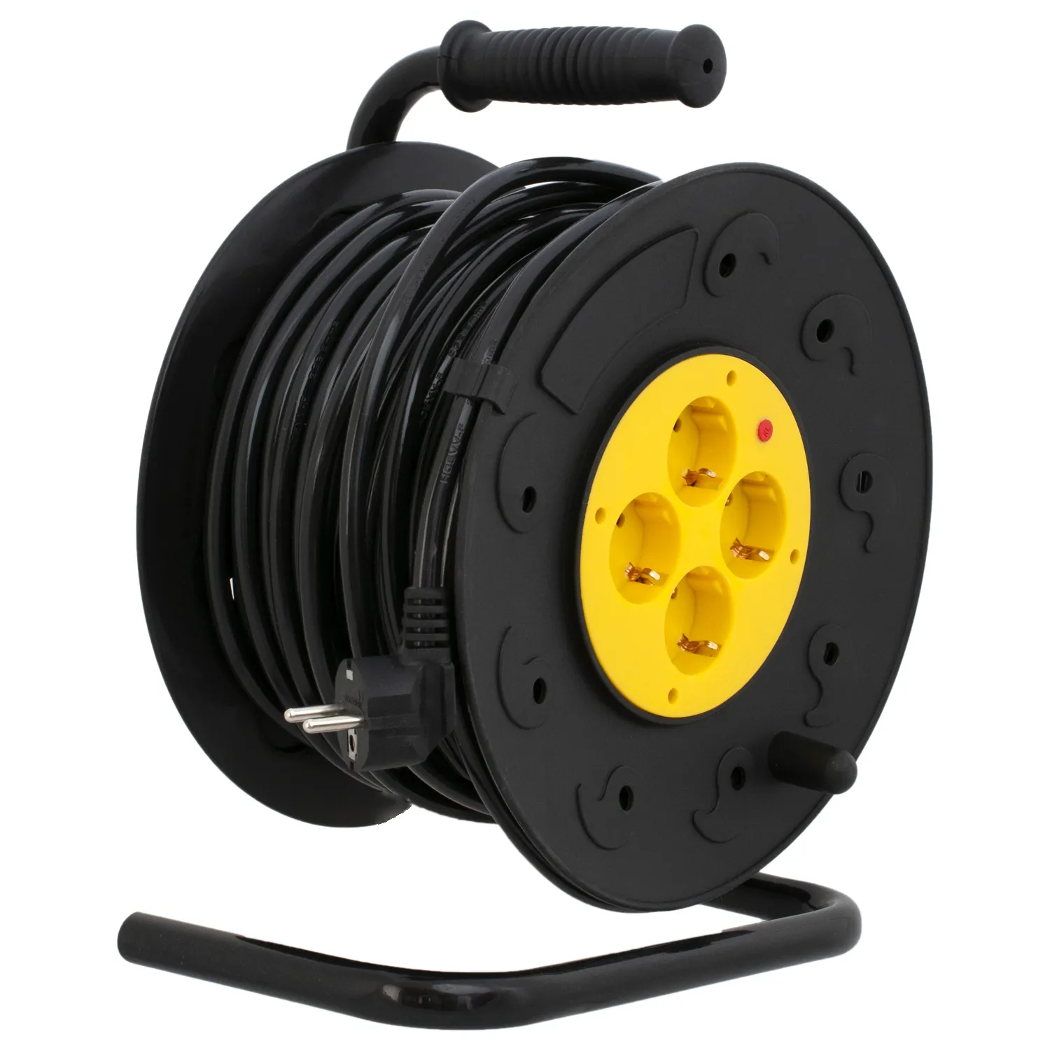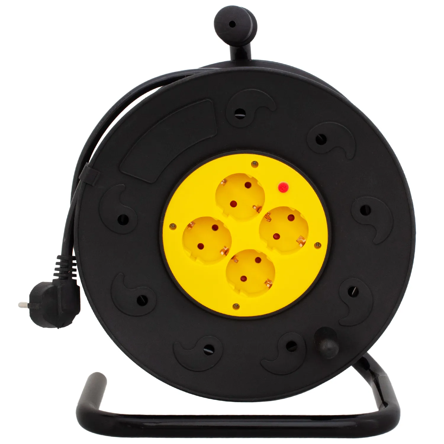 Удлинитель сетевой на катушке, 4 розетки, 10 А, 250 В, 3*2,5 мм2, 40 метров, черно-жёлтый Patron (PN-CAB-REL-40-4)