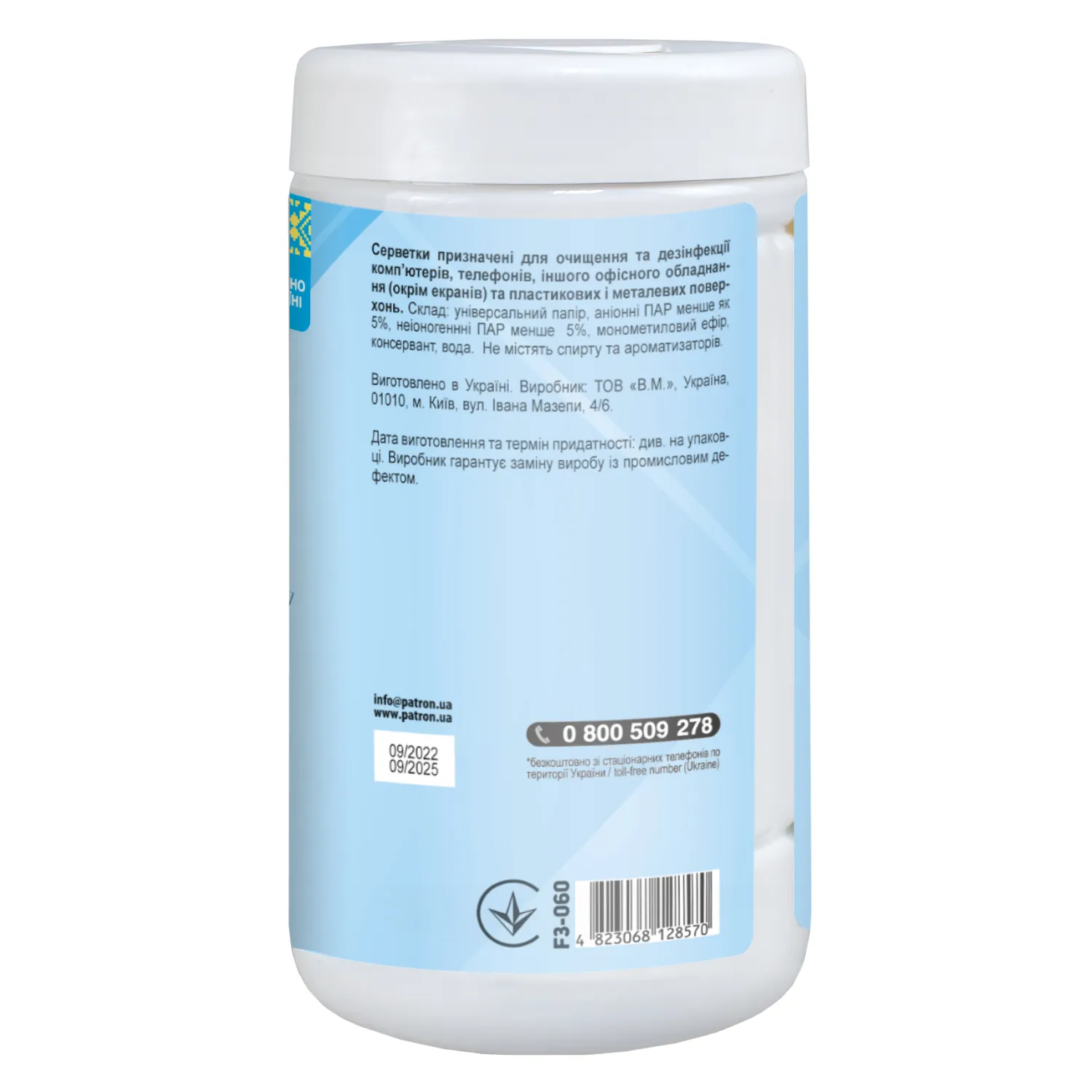 Салфетки для очистки оргтехники, туба 100 шт Patron (F3-028)