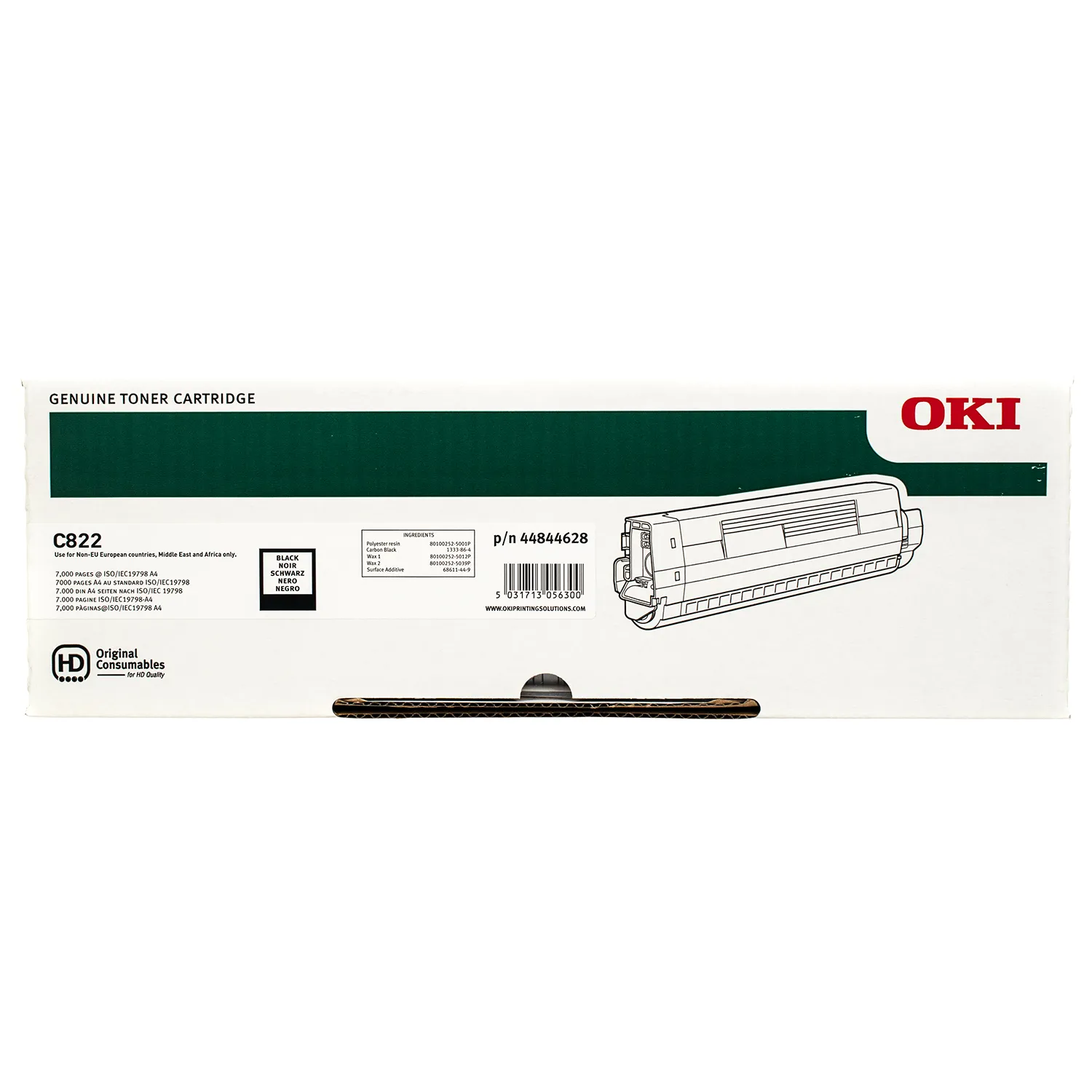 Тонер-картридж C822 черный Oki (44844628/44844616) относится к группе оригинальных расходных материалов, единственным минусом которых является высокая стоимость.