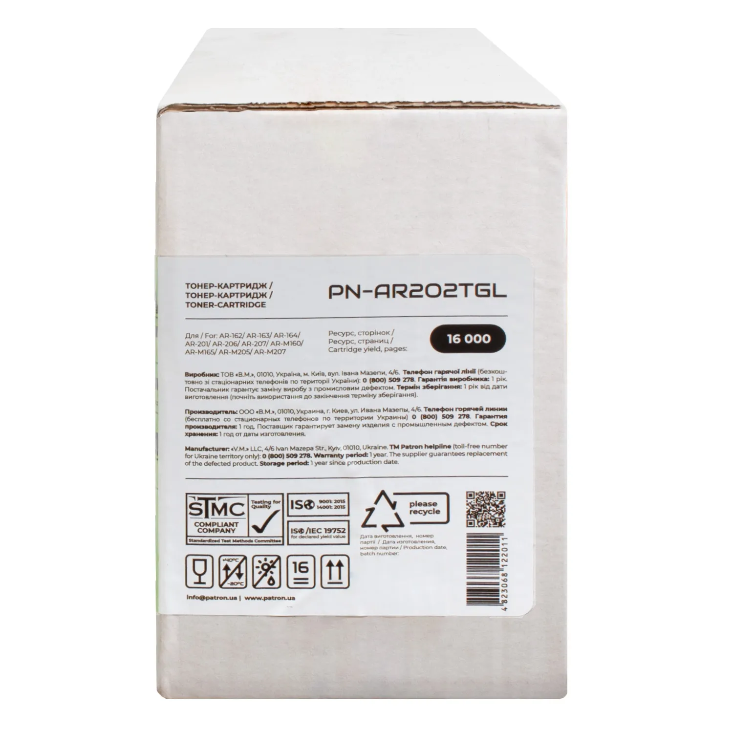 Мы позаботились о том, чтобы упаковка картриджа была не только экологичной, функциональной, имела минимально возможные физические размеры, но и содержала всю необходимую информацию. На зеленой этикетке находится информация о продукте, его совместимости с печатающими устройствами, номер партии, дата изготовления, контакты производителя, а также номер телефона бесплатной горячей линии для украинских потребителей.
