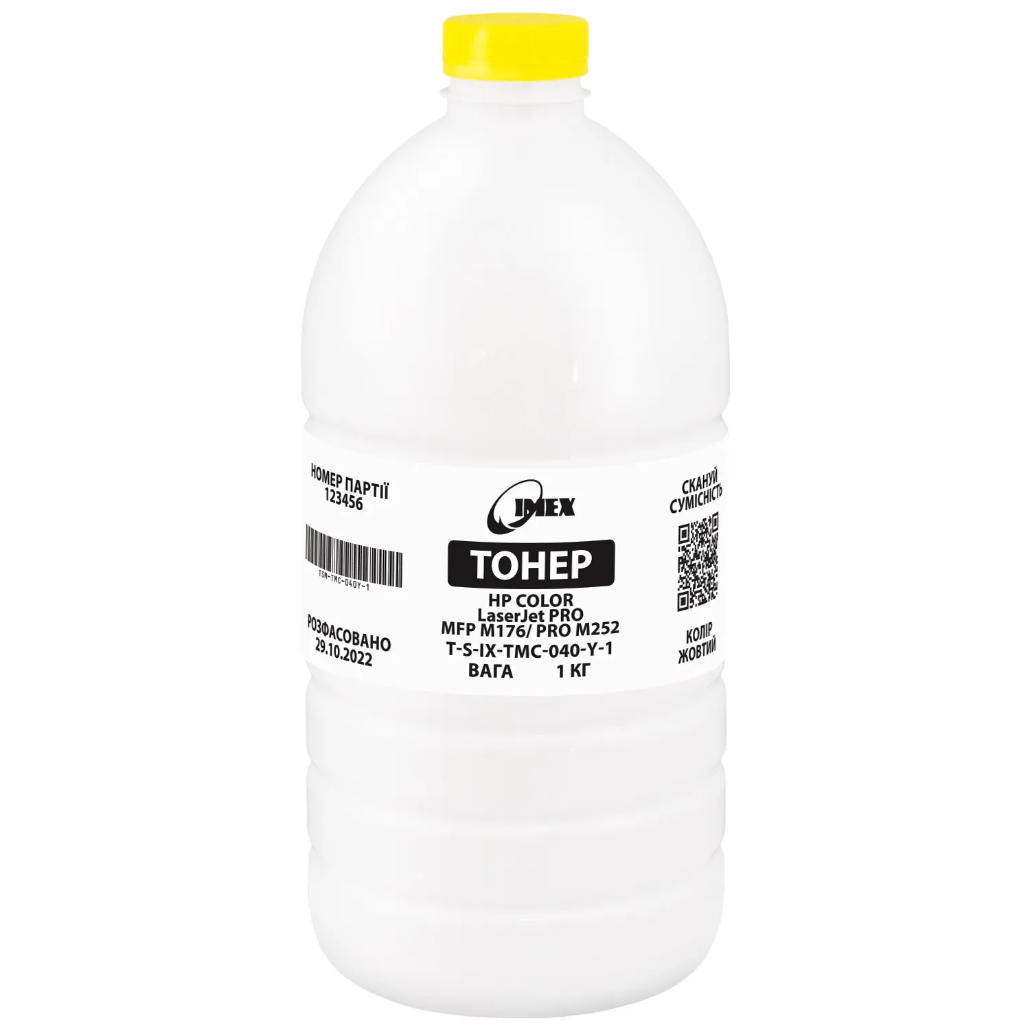 Тонер HP Color LaserJet Pro MFP M176/Pro M252 жовтий, флакон 1 кг Imex (TSM-TMC-040Y-1) опис: