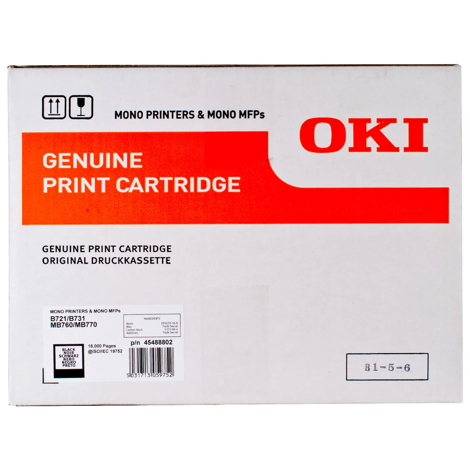 Ресурс тонер - картриджа MB760-18K Oki складає 18000 сторінок.