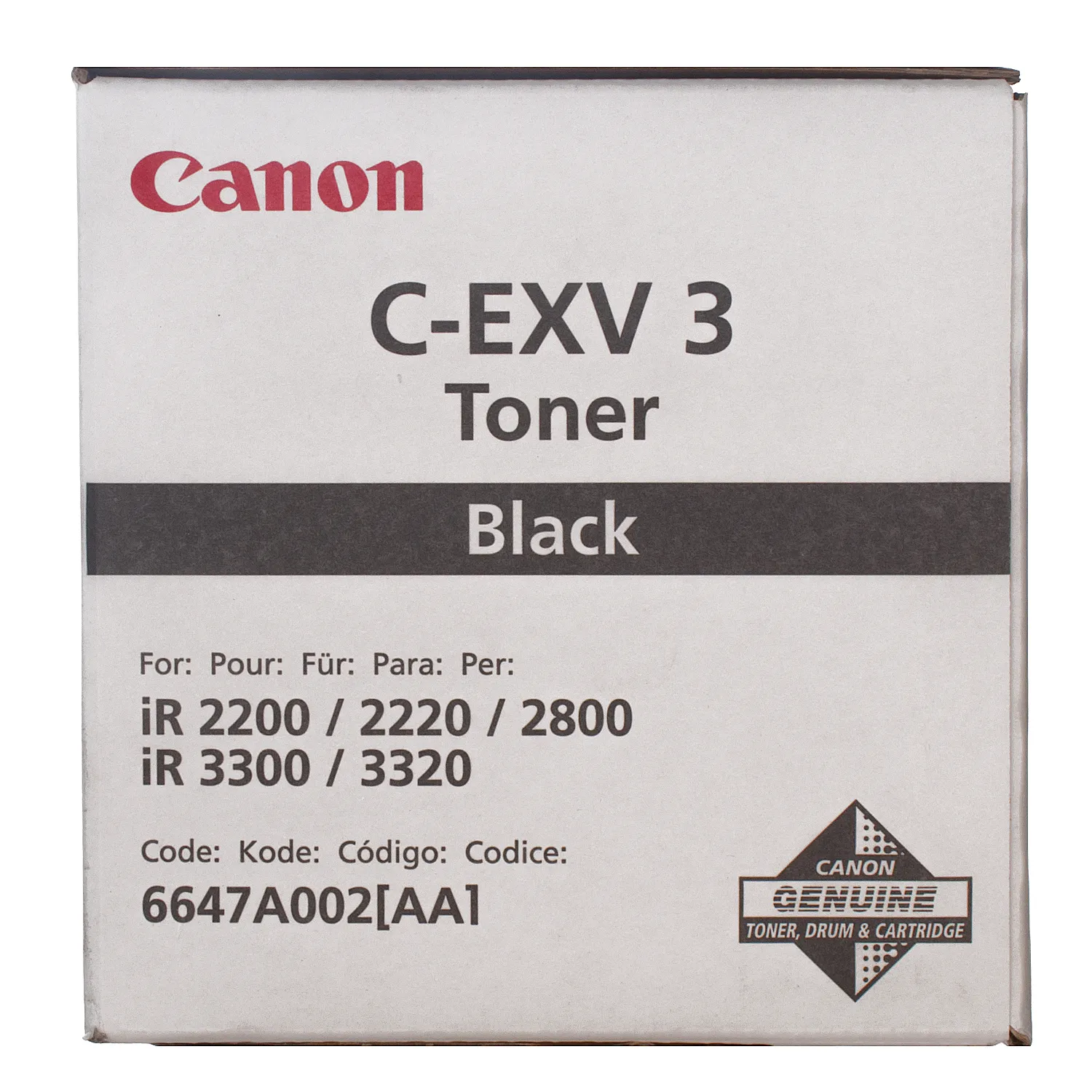 Оригінальний тонер - картридж C-EXV3 було розроблено компанією Canon, що є гарантією високої якості і забезпечує стабільну роботу протягом всього ресурсу – 15000 сторінок. Тонер-картридж C-EXV3 чорний Canon (6647A002) відноситься до групи оригінальних витратних матеріалів, єдиним мінусом яких є висока вартість..