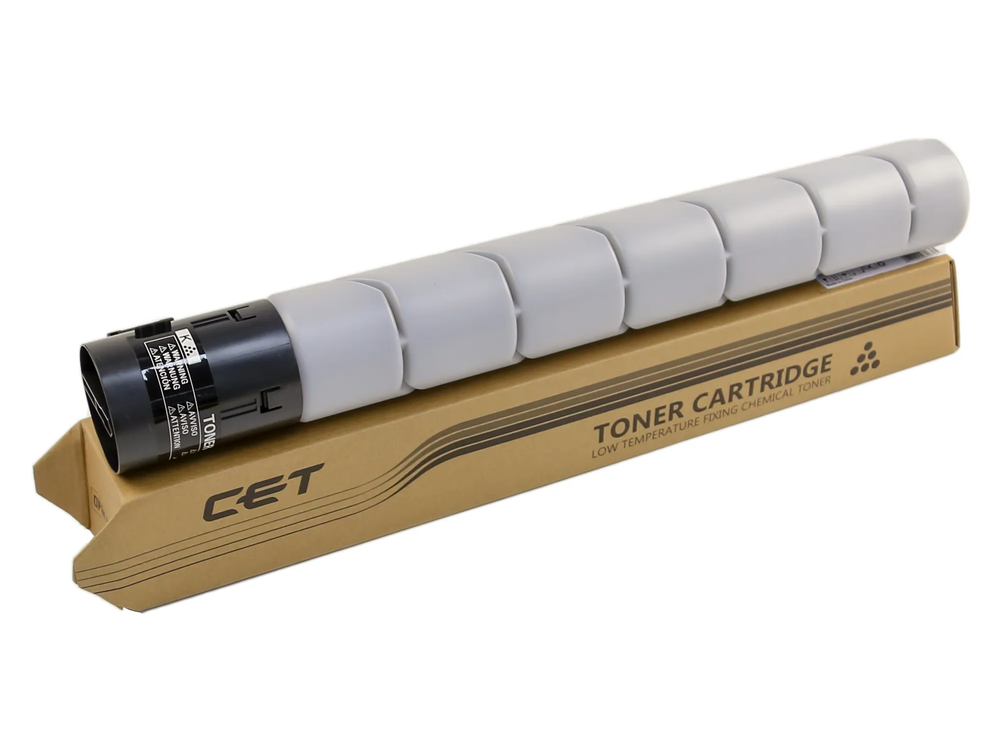 Витратні матеріали CET відносяться до роздільної системи – тонер-картридж (тонер-туба) + драм-картридж - в таких пристроях фотобарабан знаходиться в окремому блоці та замінюється окремо від тонер-картриджа, що є більш економним варіантом.