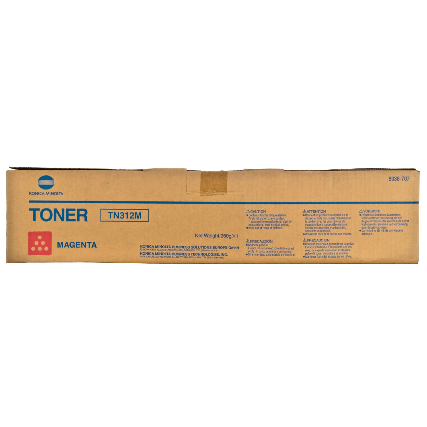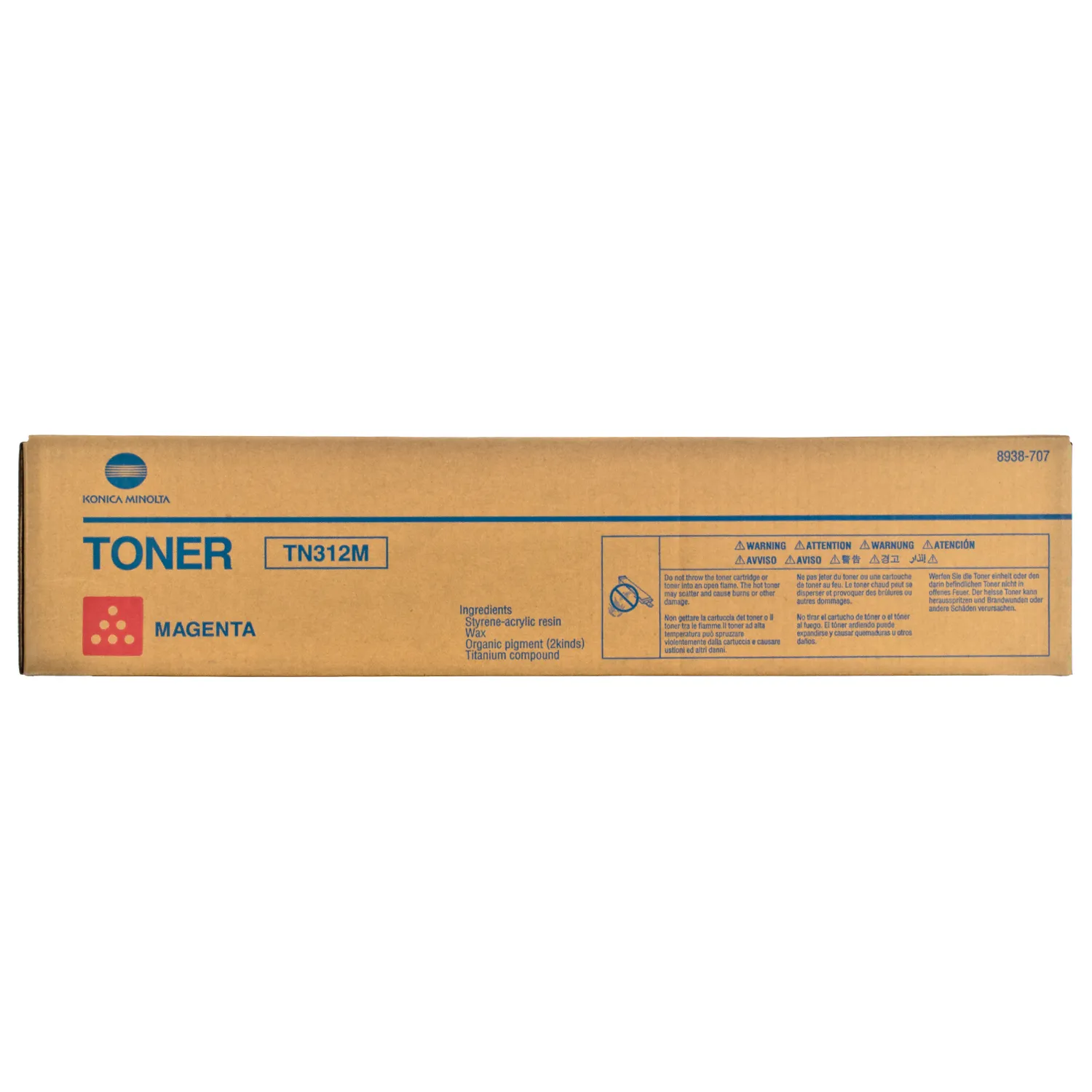 Картридж 8938-707-M розроблений та виробляється компанією Konica Minolta, тому він є ідеальним вибором для бездоганної якості друку. Можна із впевненістю розраховувати, що оригінальний картридж для лазерного принтера Konica Minolta буде безвідмовно працювати протгом всього ресурсу – 12000 сторінок. Тонер-картридж TN-312M пурпуровий Konica Minolta (8938-707) відноситься до групи оригінальних витратних матеріалів, єдиним мінусом яких є висока вартість.