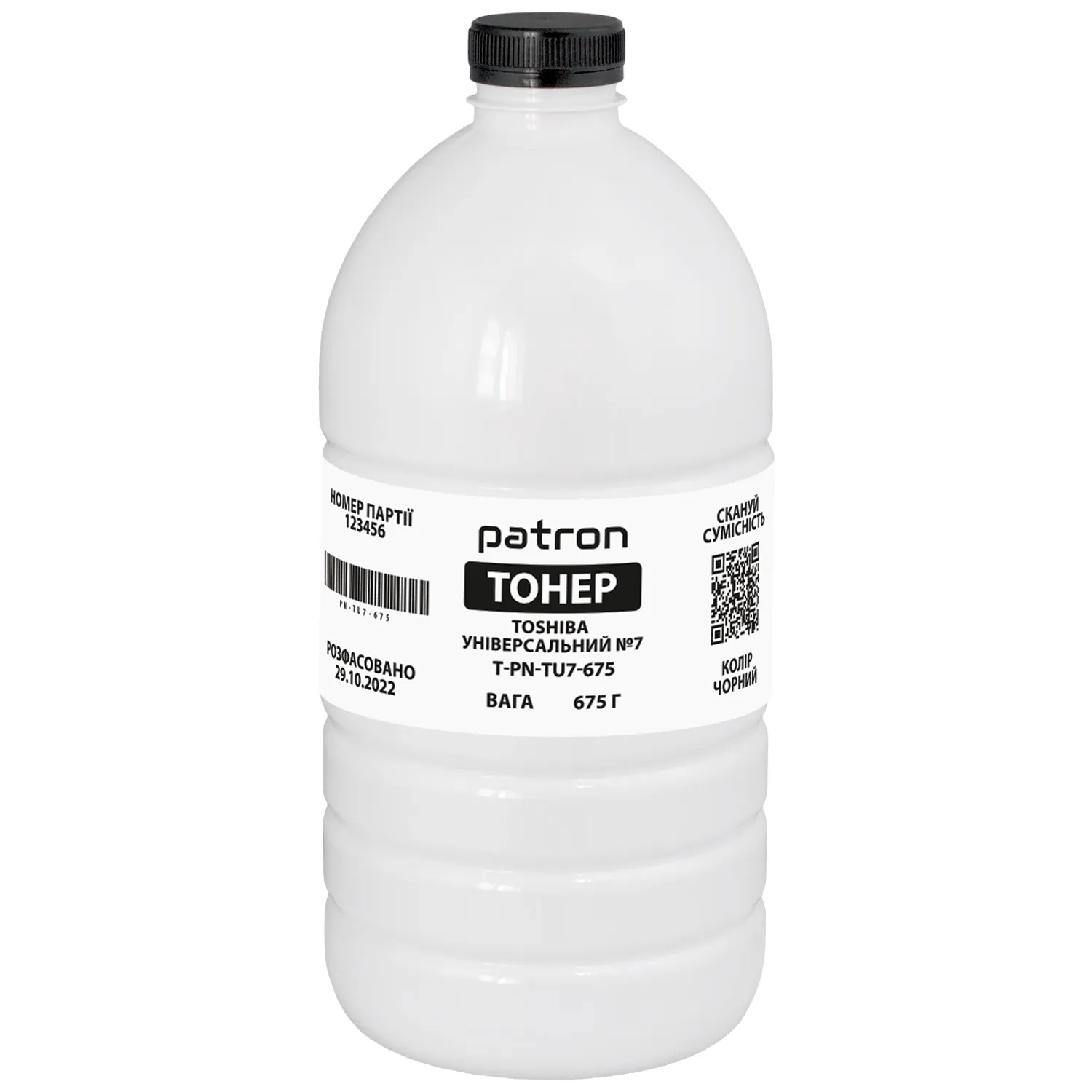 Тонер Toshiba універсальний №7 флакон, 675 г Patron (PN-TU7-675) відноситься до універсальної серії тонерів Patron: