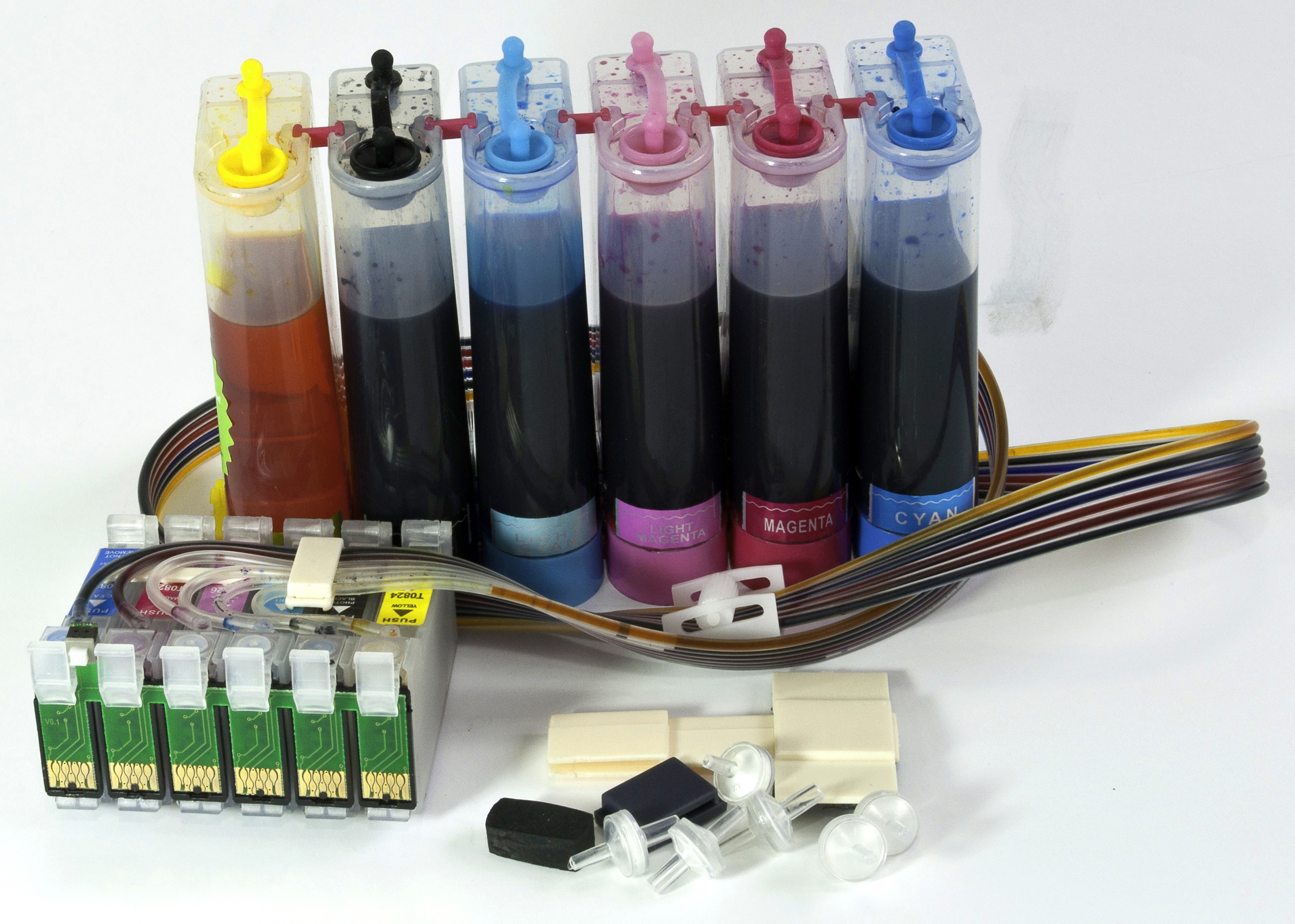 Однак і в цьому випадку необхідно додавати чорнила завчасно, щоб у шлейф та голівки не потрапило повітря зі спорожнілих ємностей, з чорнилом «на денці».