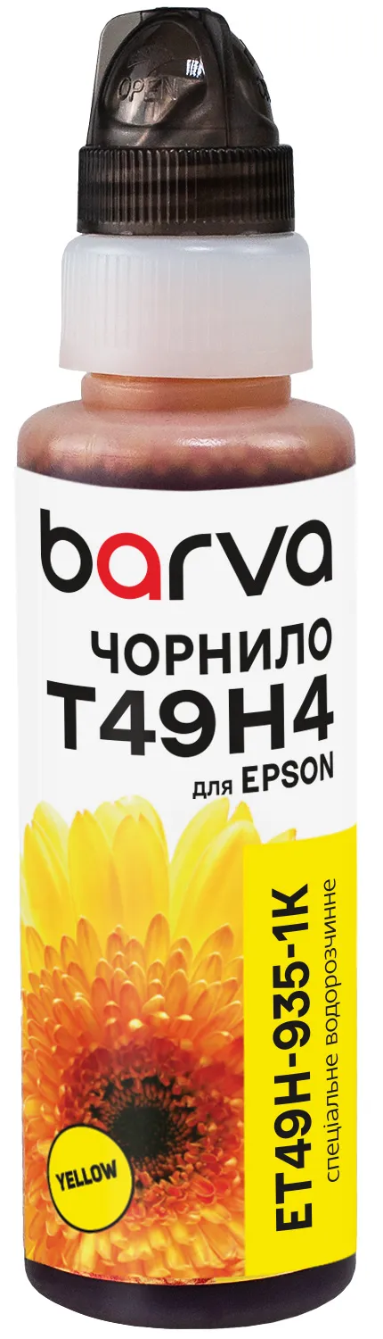 - Чорнило сумісне для Epson T49H4 спеціальне 100 мл, флакон OneKey (1K), водорозчинне, жовте Barva (ET49H-935-1K)
