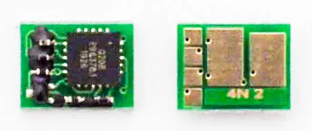 Чіп - це не велика за розміром мікросхема, в яку вшита інформація про ресурс самого картриджа, забезпечений функцією обміну даними з принтером. Простіше кажучи, завдяки чіпу апарат може порахувати кількість надрукованих сторінок. У момент, коли лічильник сторінок підійшов до кінця, ви побачите попередження про те, що картридж закінчився і його необхідно замінити, навіть якщо в бункері картриджа залишився невикористаний тонер.
