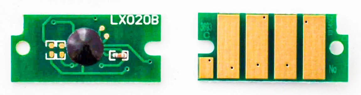 Чіп - це не велика за розміром мікросхема, в яку вшита інформація про ресурс самого картриджа, забезпечений функцією обміну даними з принтером. Простіше кажучи, завдяки чіпу апарат може порахувати кількість надрукованих сторінок. У момент, коли лічильник сторінок підійшов до кінця, ви побачите попередження про те, що картридж закінчився і його необхідно замінити, навіть якщо в бункері картриджа залишився невикористаний тонер.
