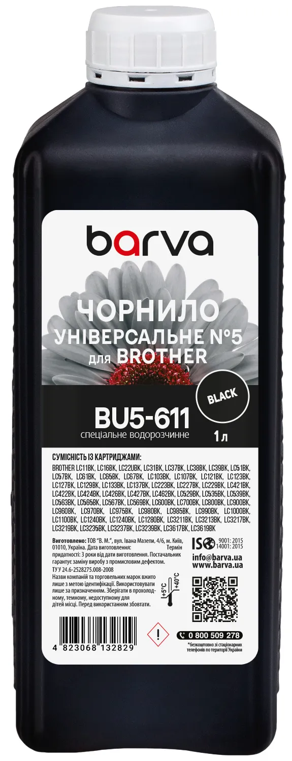 Чорнило для Brother універсальне №5 1 л, водорозчинне, чорне Barva (BU5-611) опис: