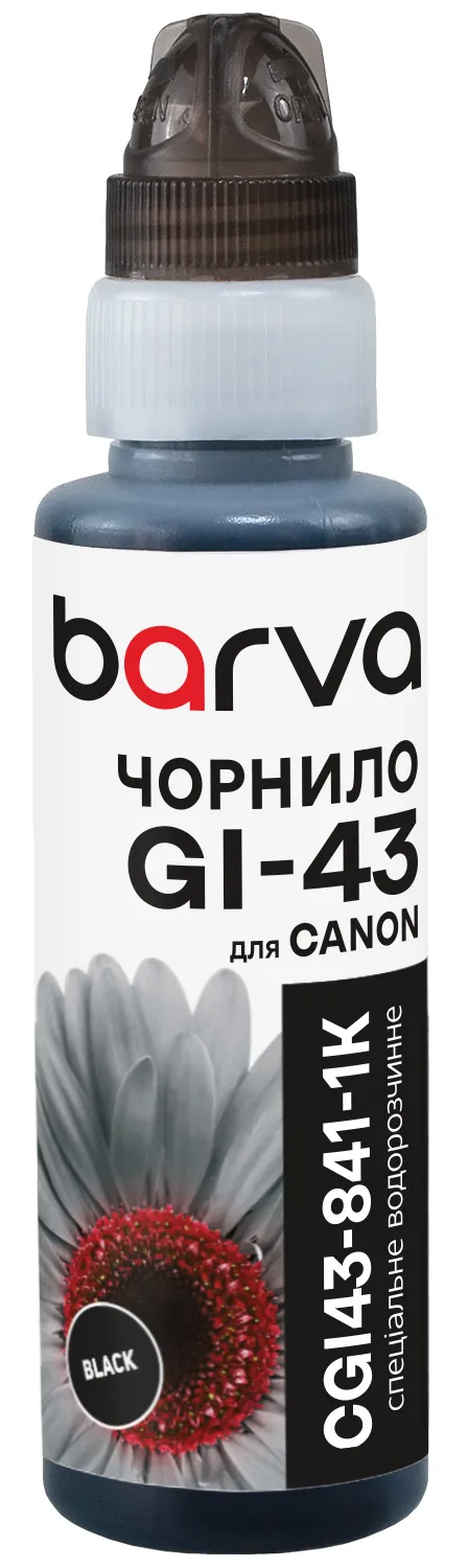 Чорнило для Canon GI-43 BK спеціальне 100 мл, флакон OneKey (1K), водорозчинне, чорне Barva (CGI43-841-1K) опис: