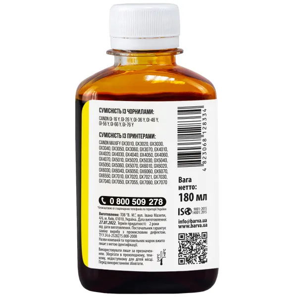 Дана фарба для принтера Canon Barva має фасовку – 180 мл:
