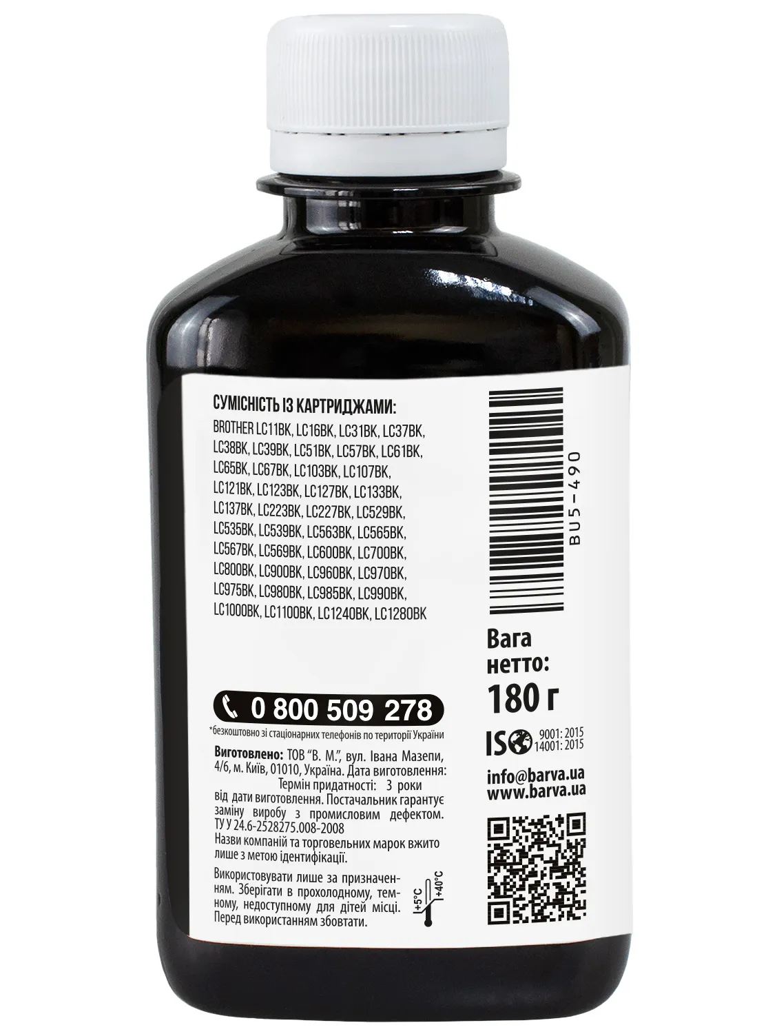 Дана фарба для принтера Brother Barva має фасовку – 180 мл: