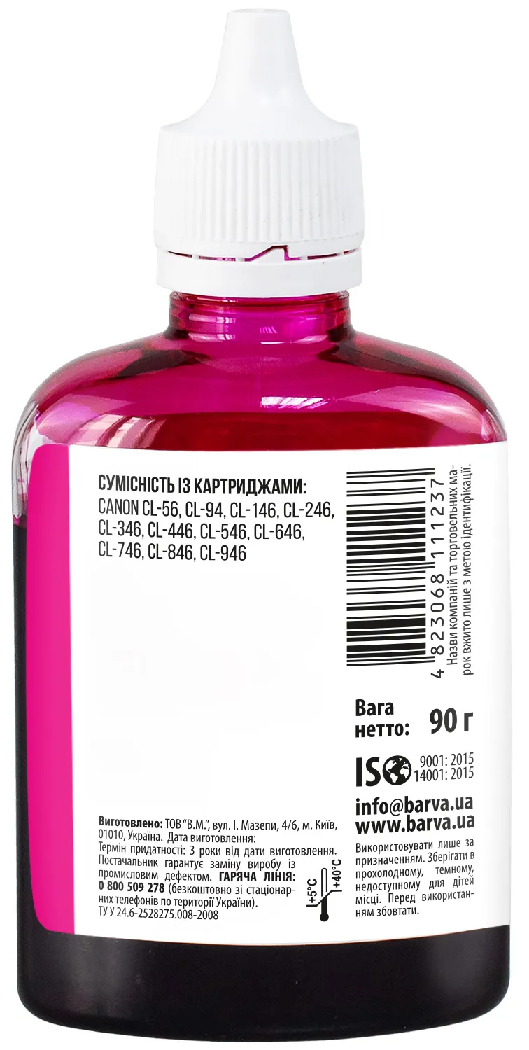 - Чорнило сумісне для Canon CL-446/CL-56/CL-94 спеціальне 90 г, водорозчинне, пурпурове Barva (C446-439)