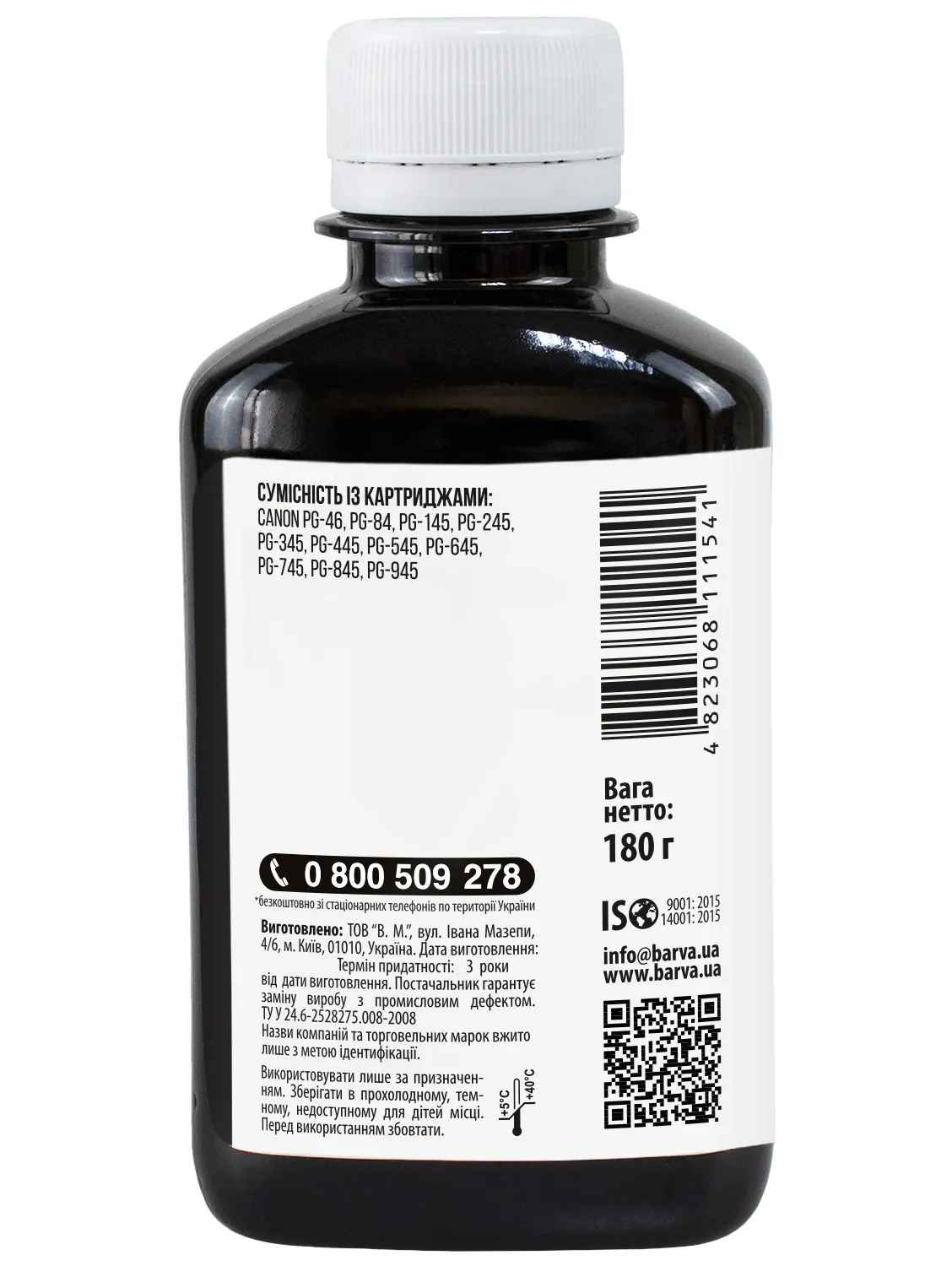 Дана фарба для принтера Canon Barva має фасовку – 180 мл: