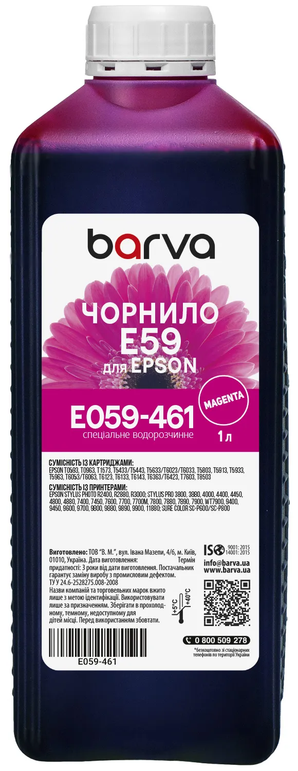 Чорнила E059-461 Barva мають офіційну гарантію від виробника – ТОВ "В.М.".