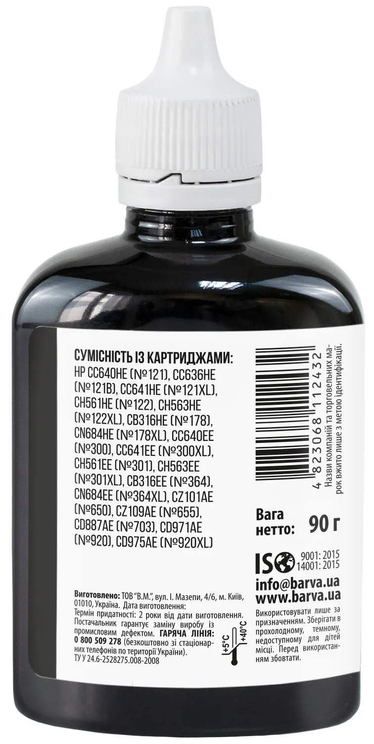 Українська компанія ТОВ «В.М.» займається виробництвом чорнил під торговою маркою Barva вже багато років. На базі власної лабораторії відбувається як розробка нових формул, так і неперервний контроль якості продукції, що випускається. При виробництві чорнил виробник слідує стандартам ISO 9001:2015 та ISO 14001:2015.