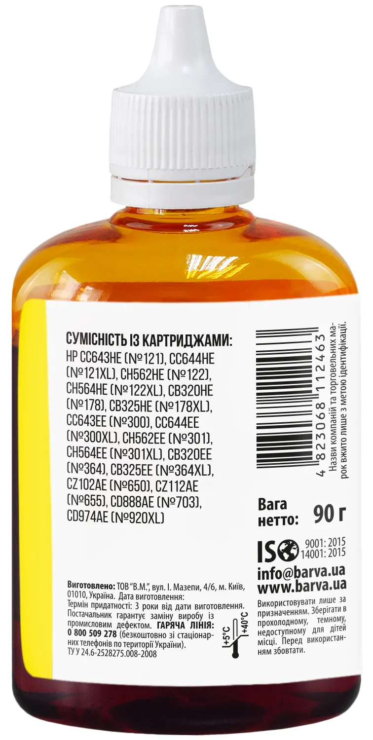 Чорнило для HP 122/178/650/655 спеціальне 90 г, водорозчинне, жовте Barva (H655-399) опис: