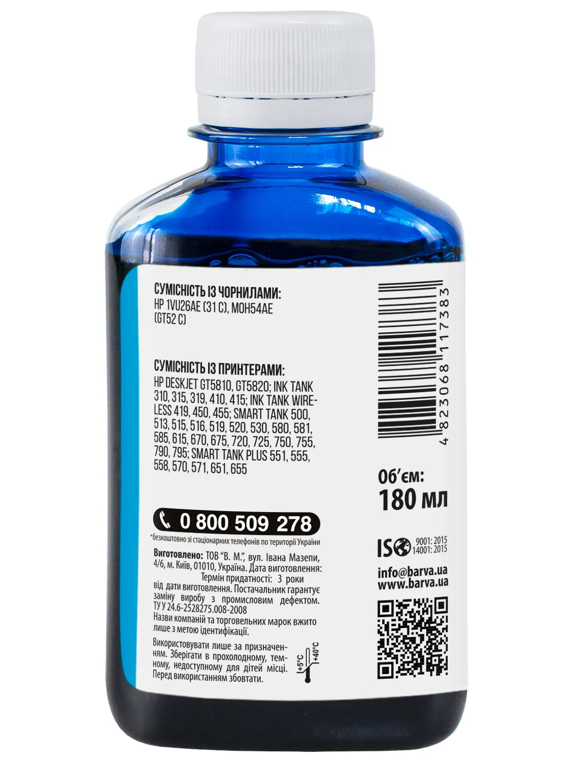 Дана фарба для принтера HP Barva має фасовку – 180 мл: