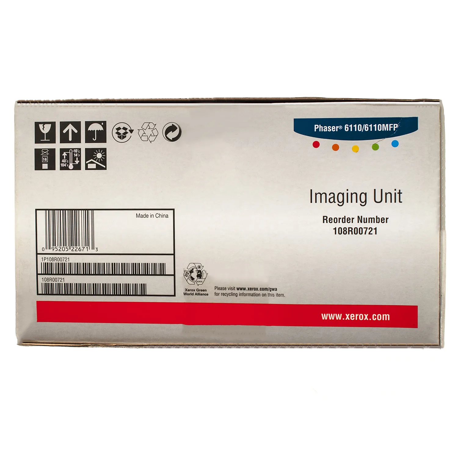 Драм - картридж Xerox 108R00721 було розроблено та виготовлено виробником друкуючого пристрою, тому є ідеальним вибором для бездоганної якості відбитків. Можна із впевненістю розраховувати, що оригінальний драм – картридж для лазерного принтера Xerox буде безвідмовно працювати протягом всього ресурсу – сторінок. Драм-картридж 108R00721 Xerox (PH6110) відноситься до групи оригінальних витратних матеріалів, єдиним мінусом яких є висока вартість.
