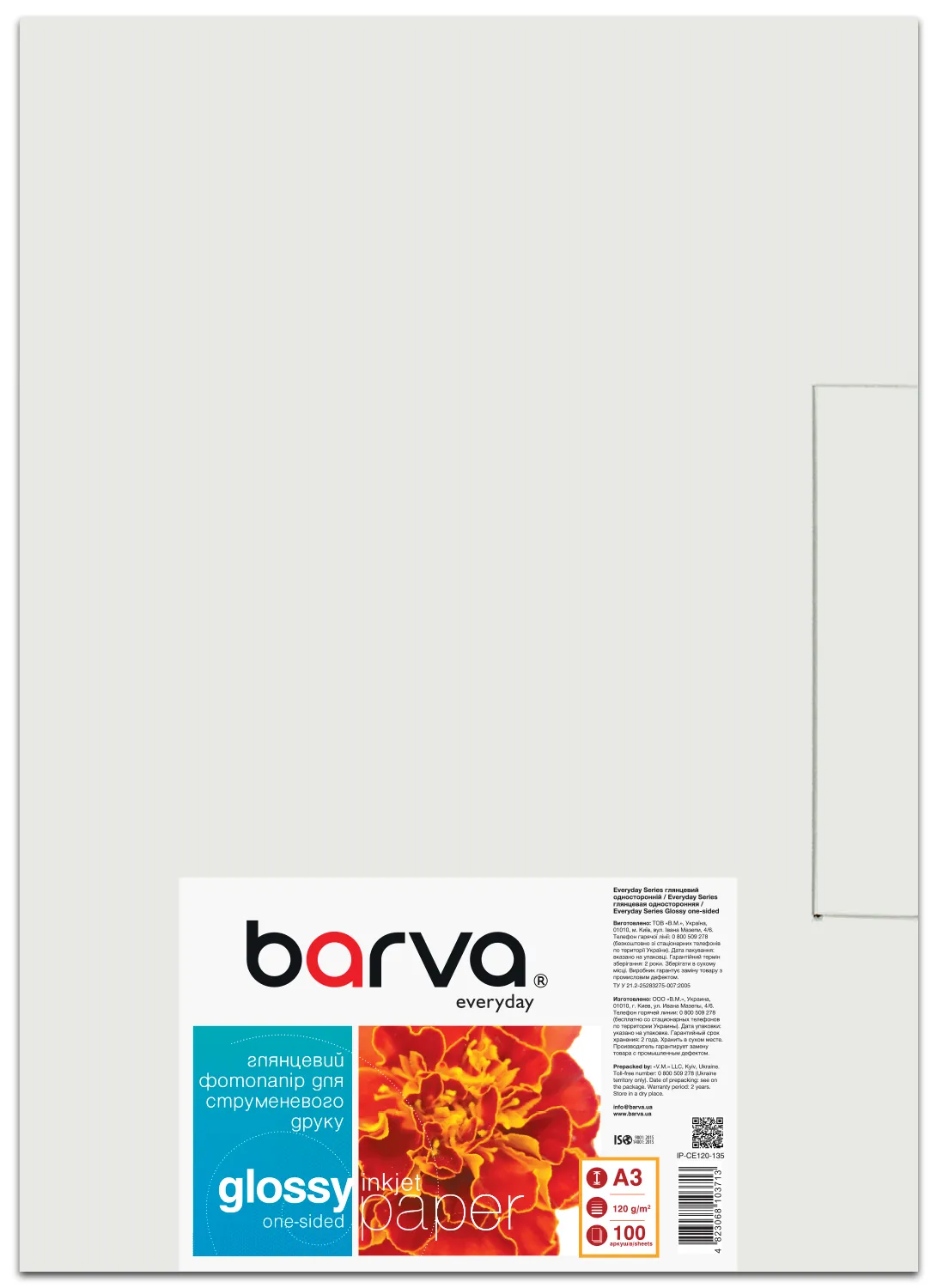 Фотопапір глянцевий 120 г/м2, A3, 100 арк Everyday Barva (IP-CE120-135)
